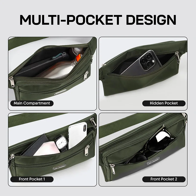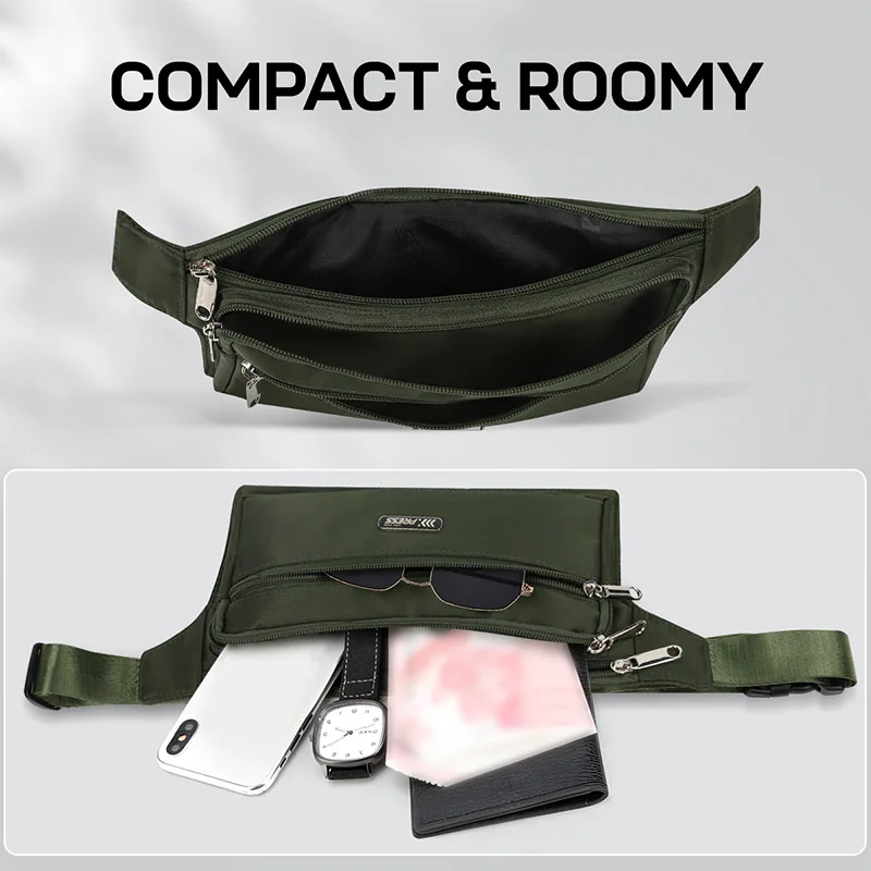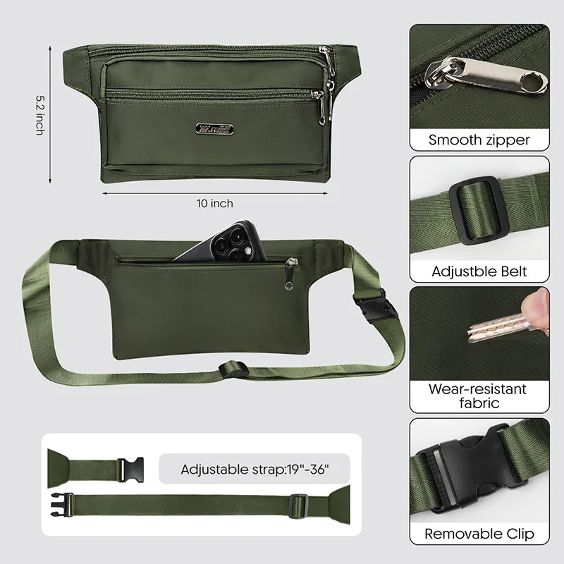 【Multiple Carrying】This compact, ultra-slim waist bag offers 3 versatile wearing styles. You can wear it at the front of your waist, crossbody, or on your hips for maximum convenience.