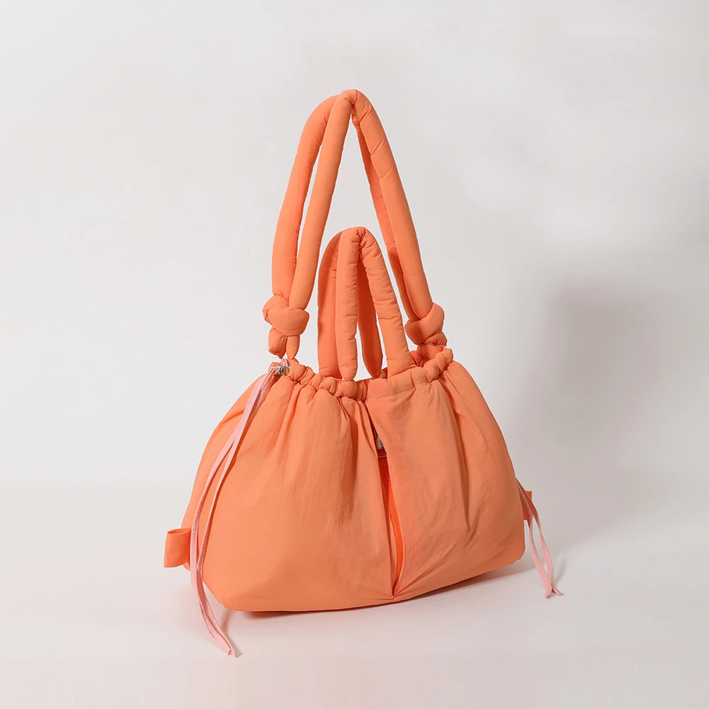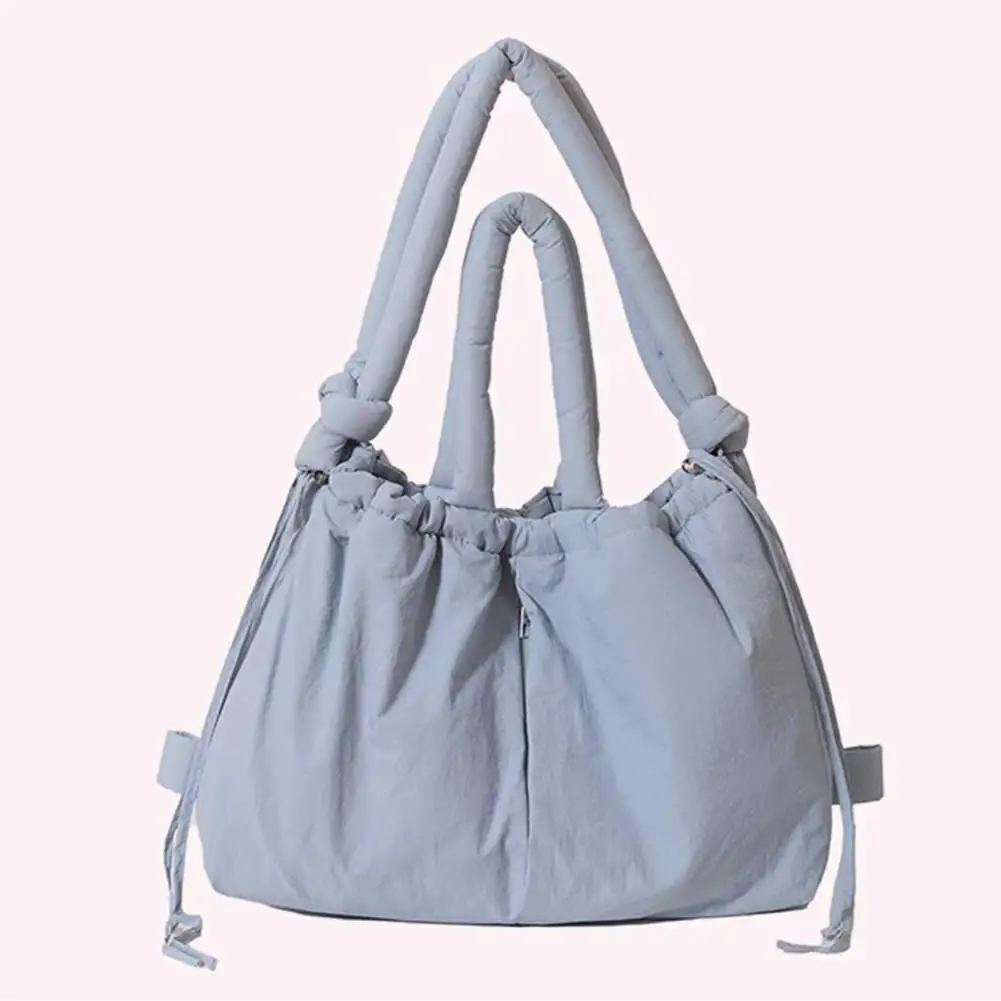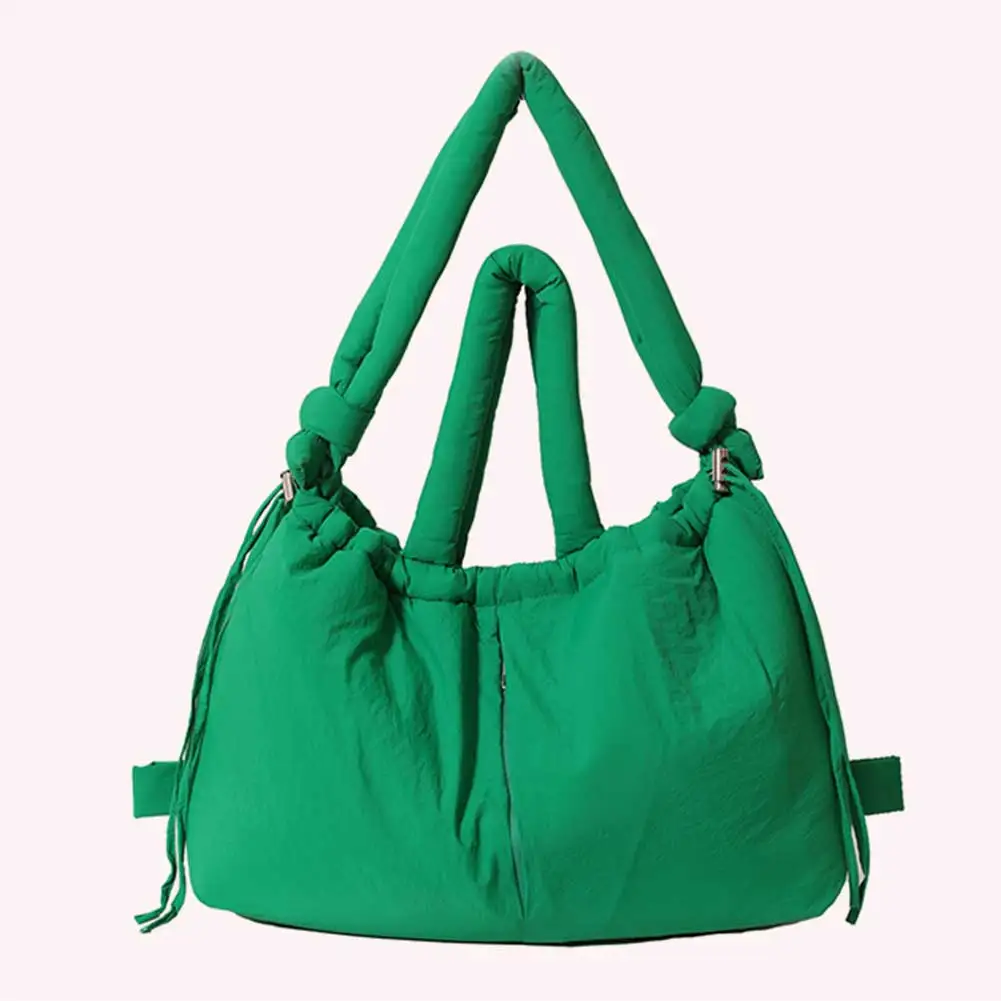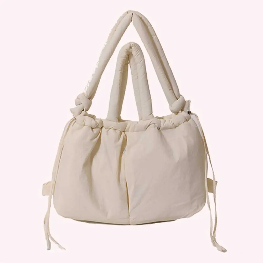 Puffer Tote Bag for Women Adjustable Strap Shoulder Bag Nylon Solid Backpack Large Capacity Puffy Purse for Shopping Travel