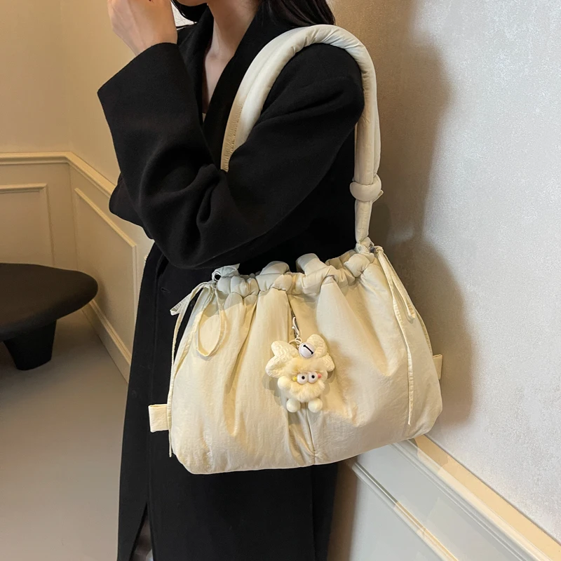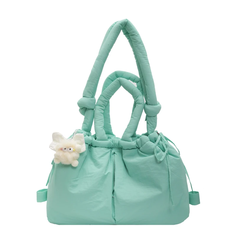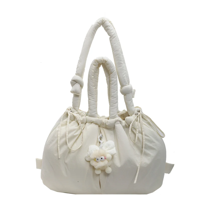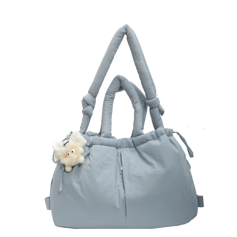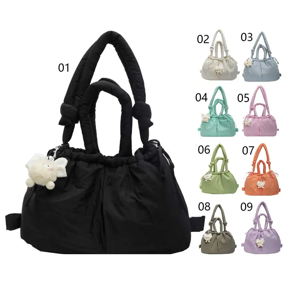 1. Durable and Easy-care Fabric: Crafted from high-quality cotton material, this puffer tote bag is built to withstand daily wear and tear while remaining easy to clean and maintain, ensuring long-lasting use. Specification: Origin: Mainland China Main material: cotton Size: 390*160*240mm/15.35*6.3*9.45inch Usage: hand-held, shoulder Shoulder strap is adjustable