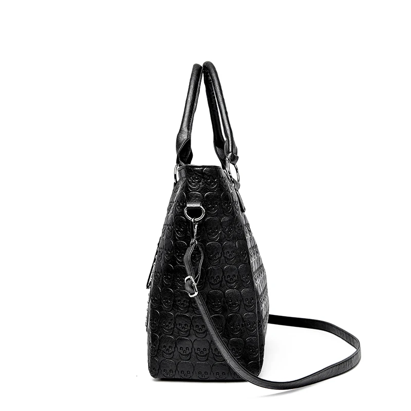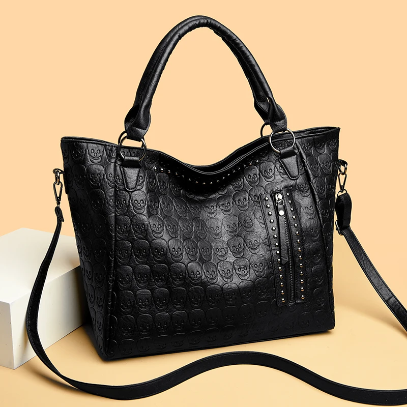 Punk Skull Crossbody Bag PU Leather Studded Fashion Handbag Large Capacity Top Handle Bag for Women Work Shopping