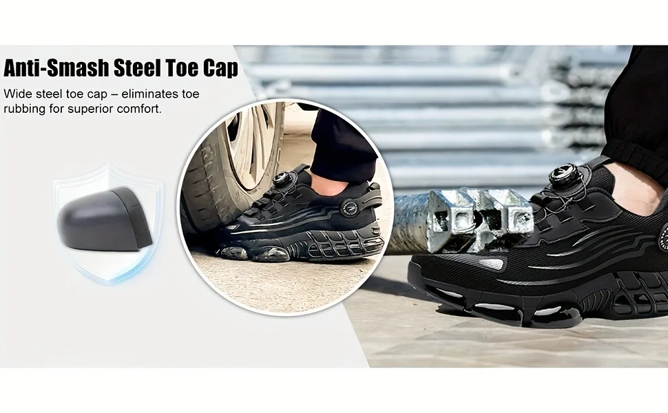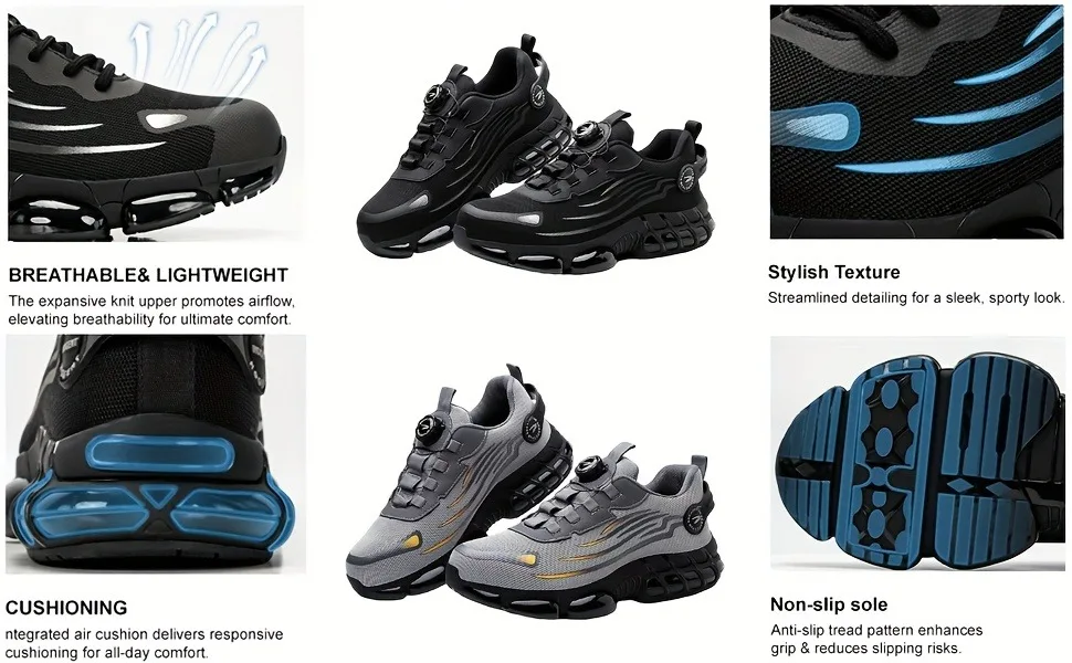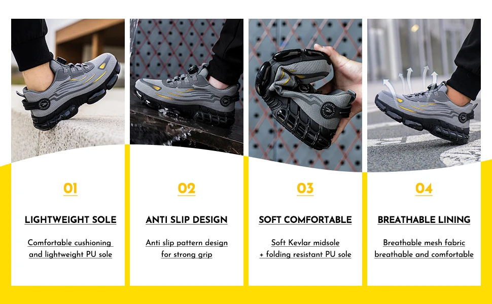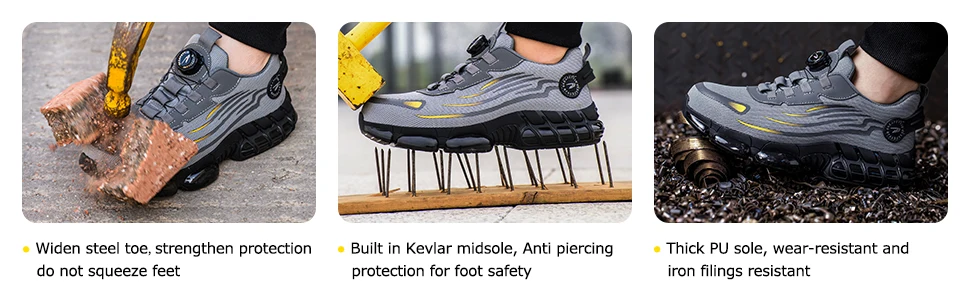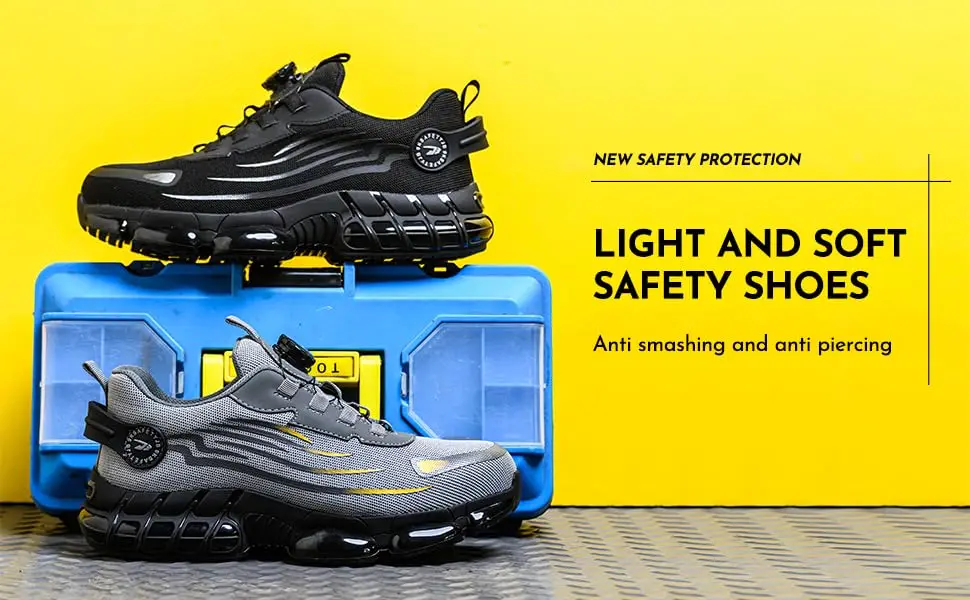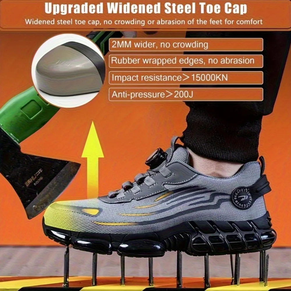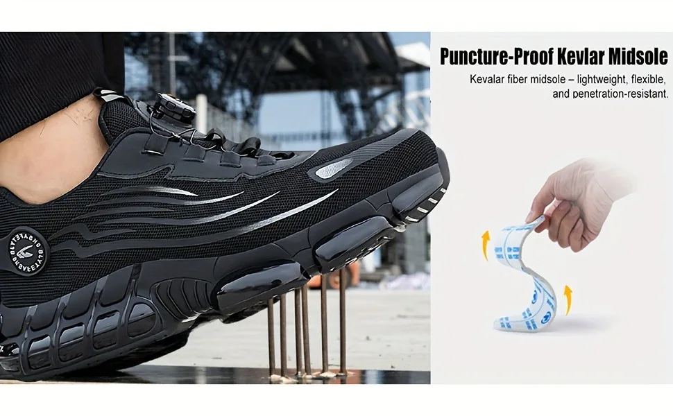 Rotating button new safety shoes for men anti smashing and anti piercing work shoes fashionable men's sports shoes safety