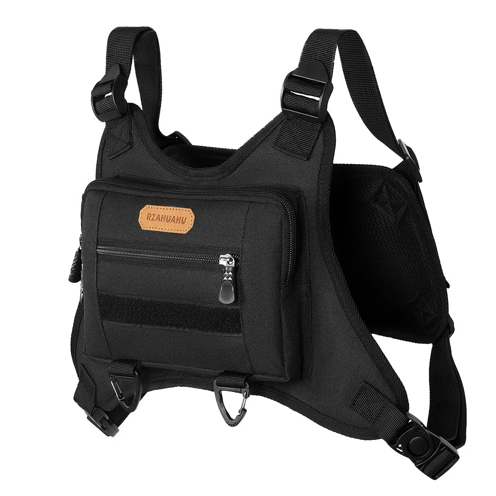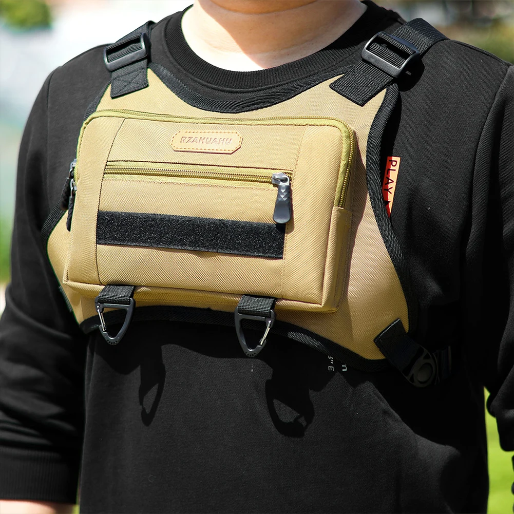 Fashion Sport Backpack Adjustable Strap Streetwear Chest Bag Large Capacity Travel Vest Backpack for Running Travel Features: 1. Spacious Storage: This sports chest bag boasts a generous storage compartment, perfect for housing essentials like smartphones, wallets, and keys. Its capacious design renders it an ideal companion for outdoor activities, travel, or everyday use, meeting all your storage needs with ease. 2. Versatile Attachments: Equipped with multiple external hooks, this front chest pack allows for convenient and flexible attachment of various items. This feature ensures that your gear is always within reach and organized just the way you need it. 3. Adjustable Straps: The running vest bag features straps that can be easily adjusted to fit any body size and wearing style. Tailor the strap length to your personal preference for a comfortable wearing experience. 4. Multiple Pockets: Designed with several pockets, this chest rig bag offers convenient compartmentalization for your items. This multi-pocket setup allows for efficient organization and easy access to your belongings, keeping everything neatly sorted. 5. Breathable Mesh: The fashion sport backpack's breathable mesh design ensures good ventilation and heat dissipation. It quickly wicks away moisture and heat, keeping you dry and comfortable during outdoor activities.