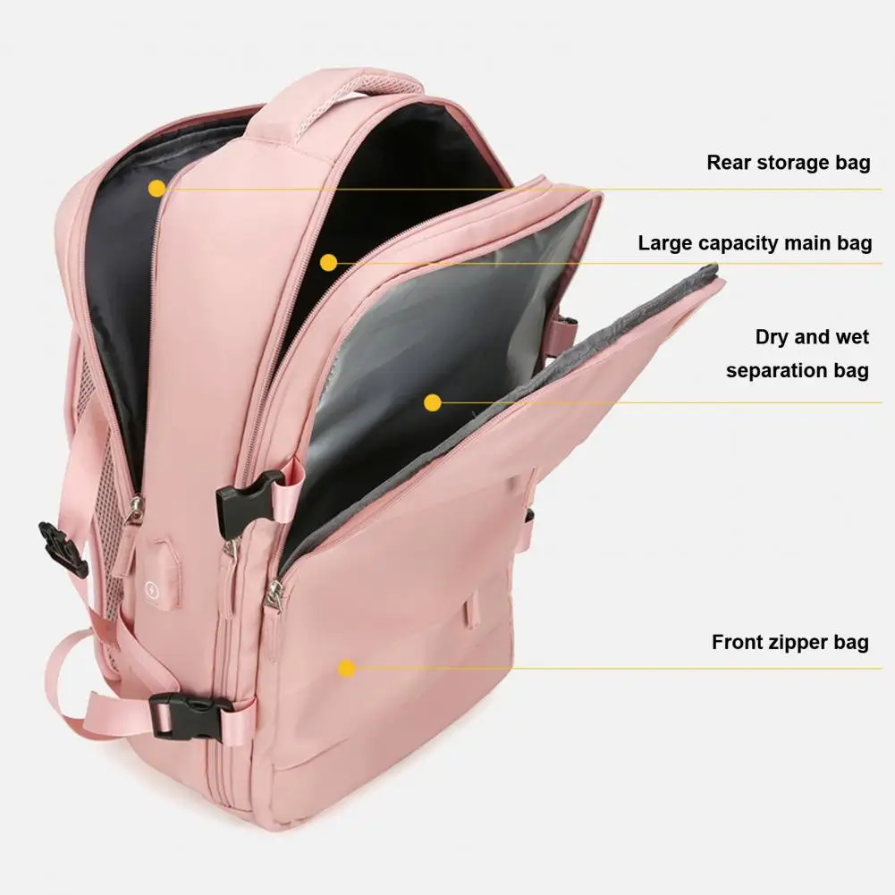 Organized Storage: Enjoy ample space and smart organization with dedicated compartments for a 16-inch laptop, 12.9-inch for iPad, and a wet layer section for toiletries or damp items. The multifunctional storage bag accommodates essentials like sunglasses, keys, and snacks efficiently.