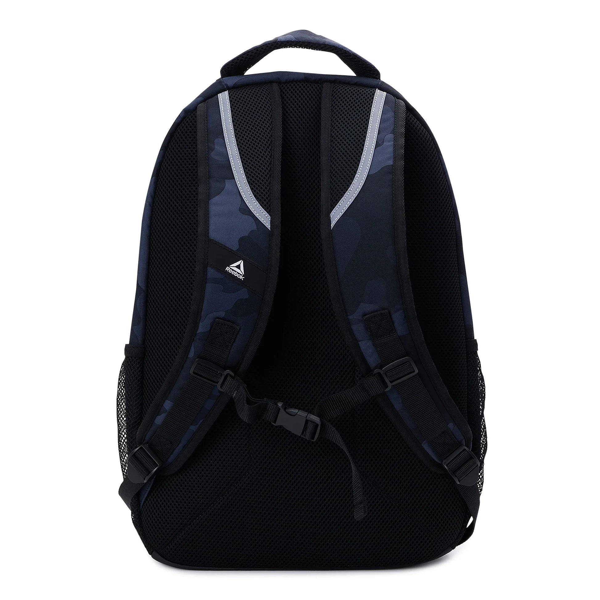 Functional Design: Features zipper closure, side mesh pockets, padded adjustable straps, padded mesh top carry handle, key fob, reflective tape, front zipper pocket, and camo panels.