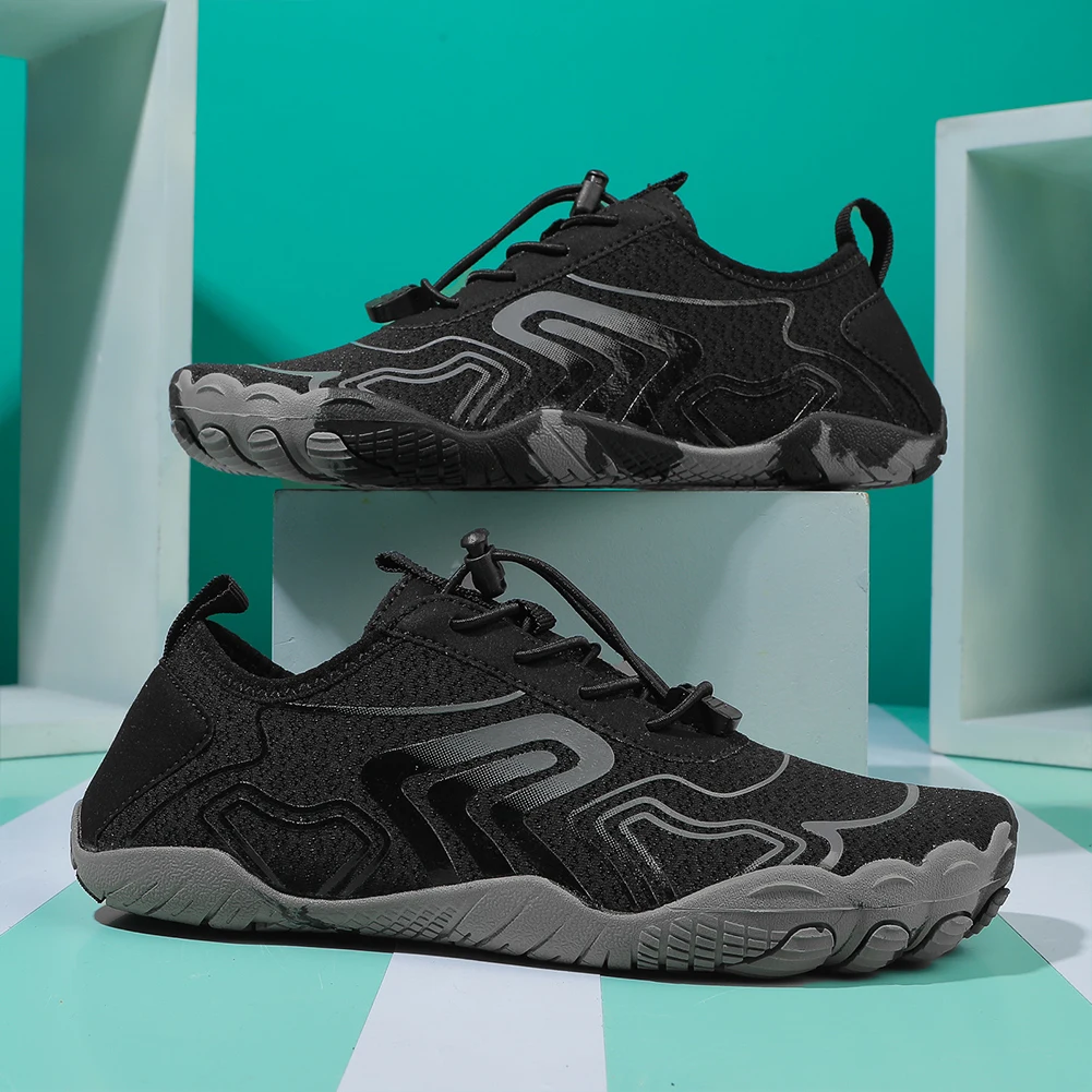 2.Breathable Comfort: The shoe upper features an air mesh layer with heat transfer printing, offering exceptional breathability. These barefoot beach shoes ensure your feet stay fresh and dry, preventing discomfort from moisture.