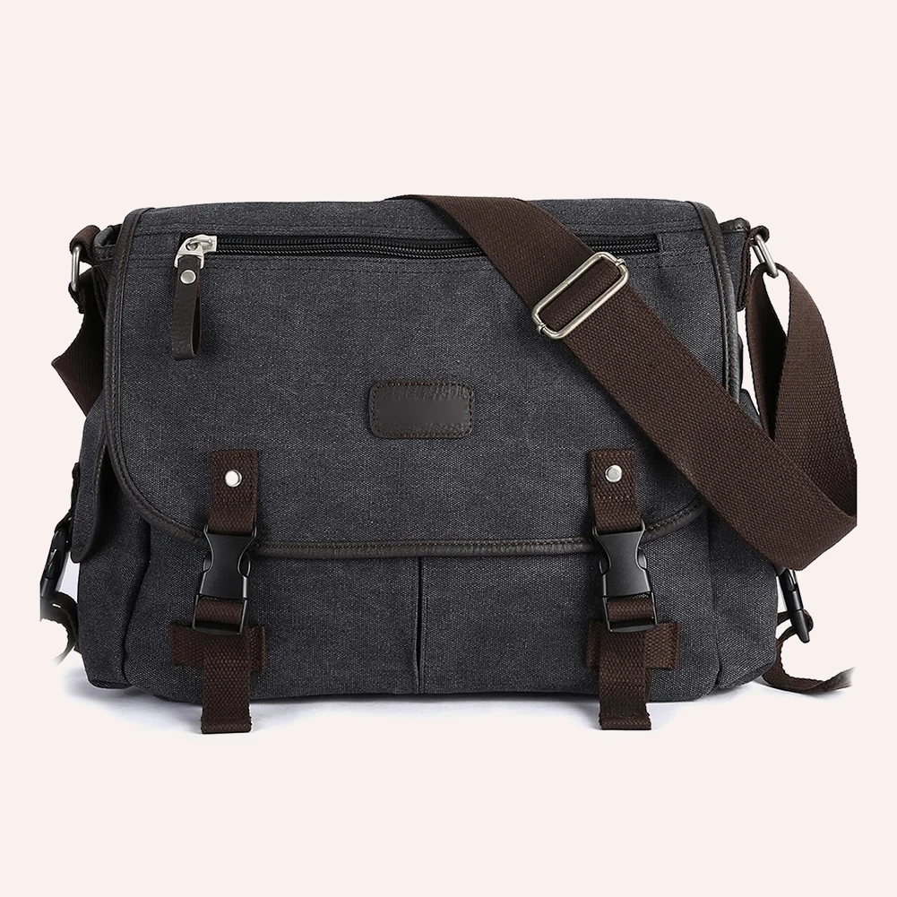 Unisex Canvas Crossbody Bags Women Men Large Capacity Laptop Shoulder Bag Multi Pockets Satchel Handbags Adjustable Strap for School Work
