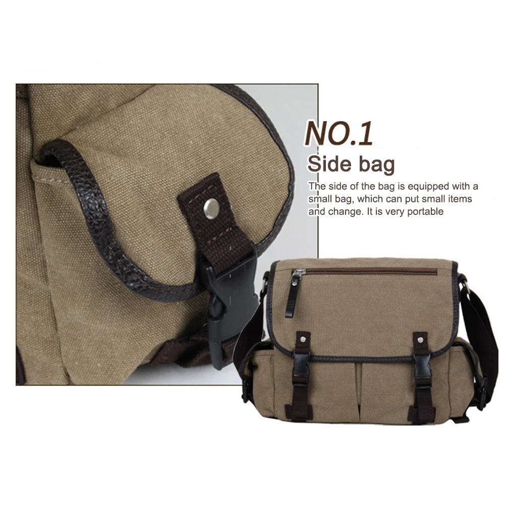 Unisex Canvas Crossbody Bags Women Men Large Capacity Laptop Shoulder Bag Multi Pockets Satchel Handbags Adjustable Strap for School Work