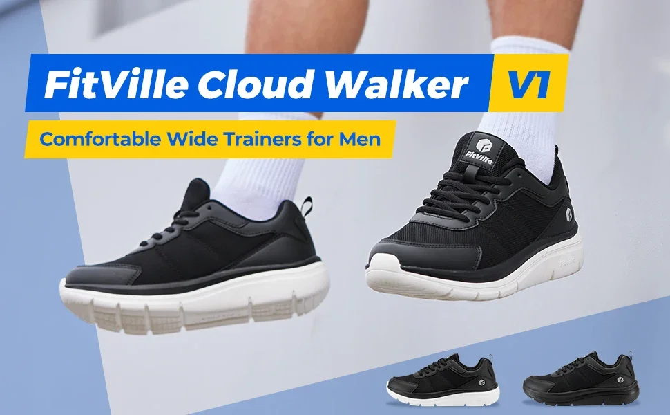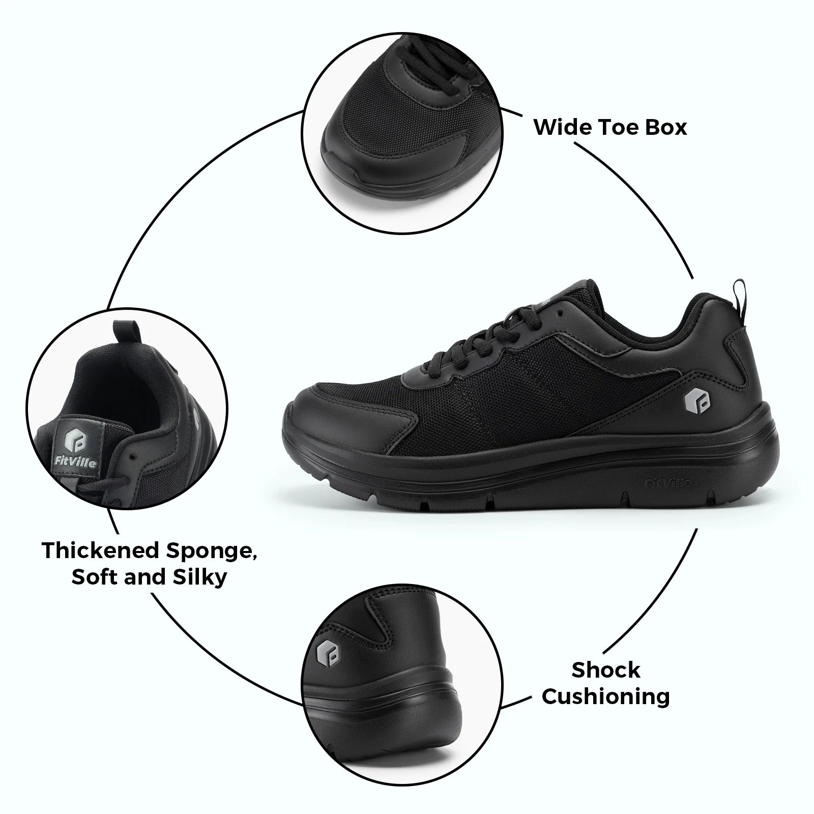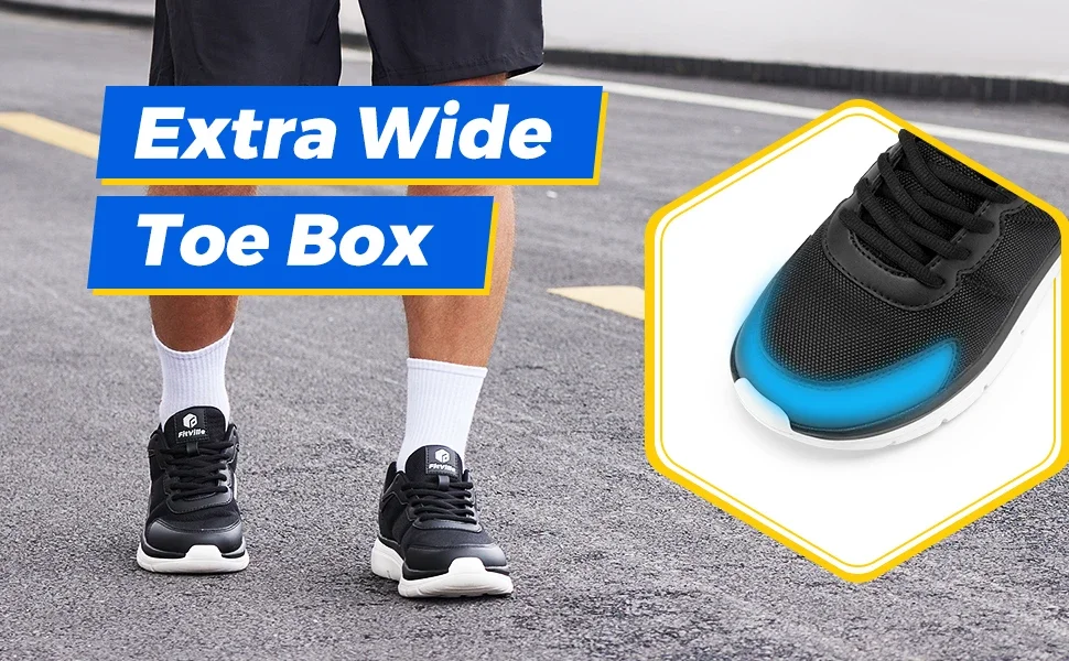 Wide Design 2E Men'S Walking Shoes Lightweight Breathable Cushioning Shoe Relieve Plantar Fasciitis Pain With Arch Support