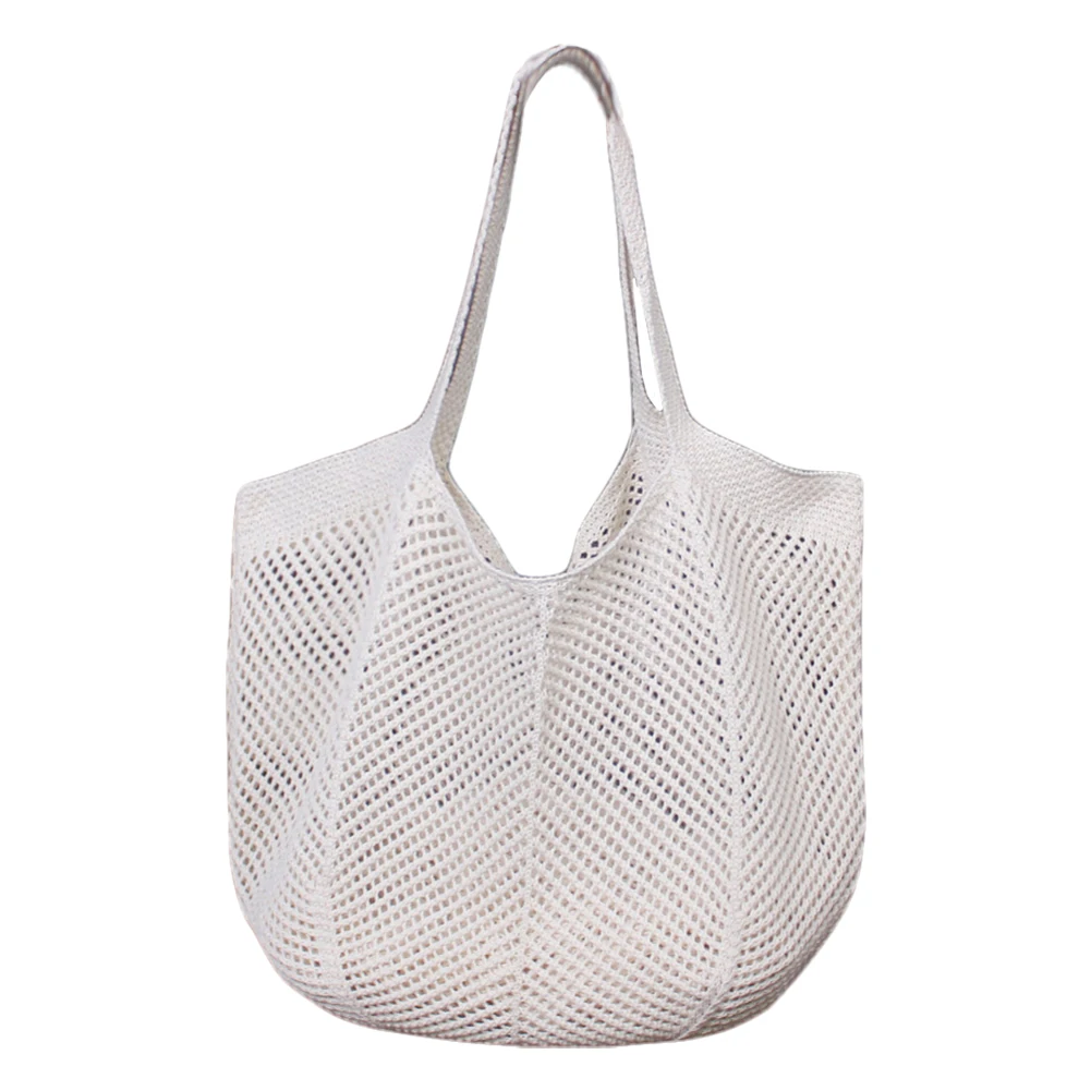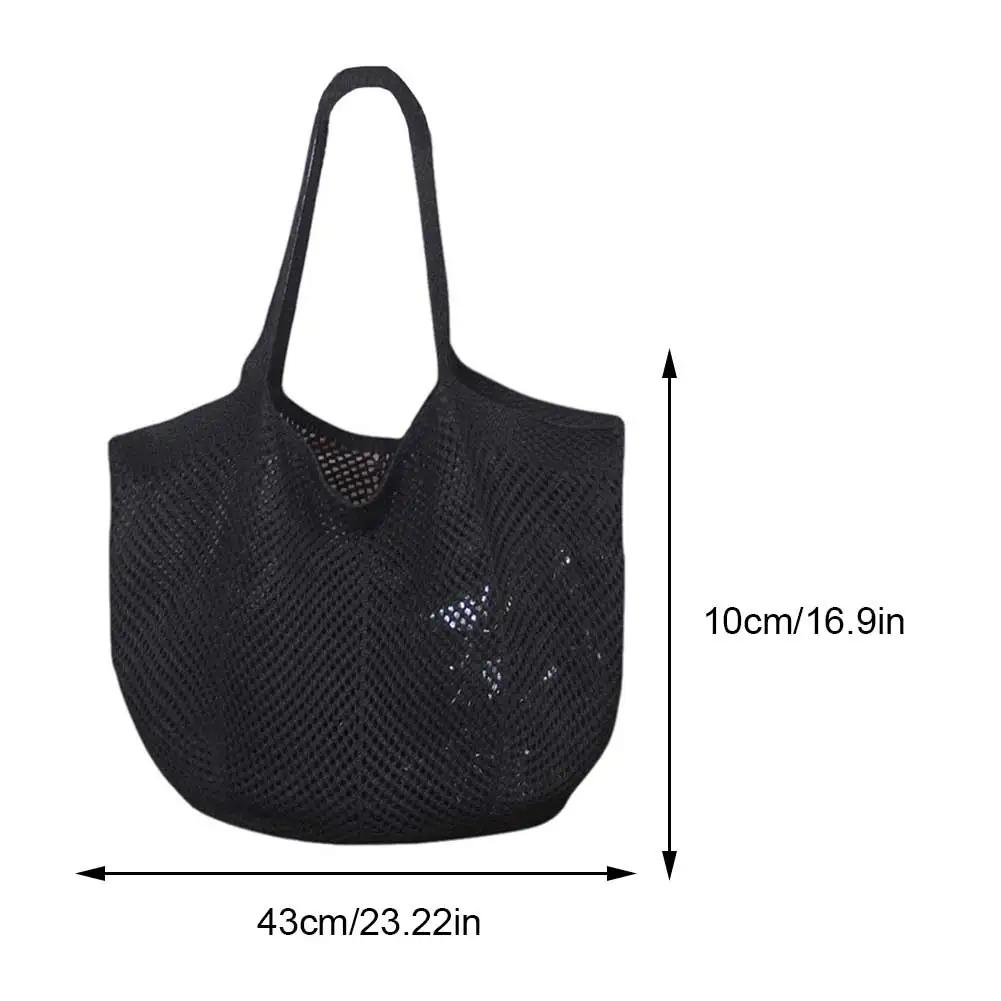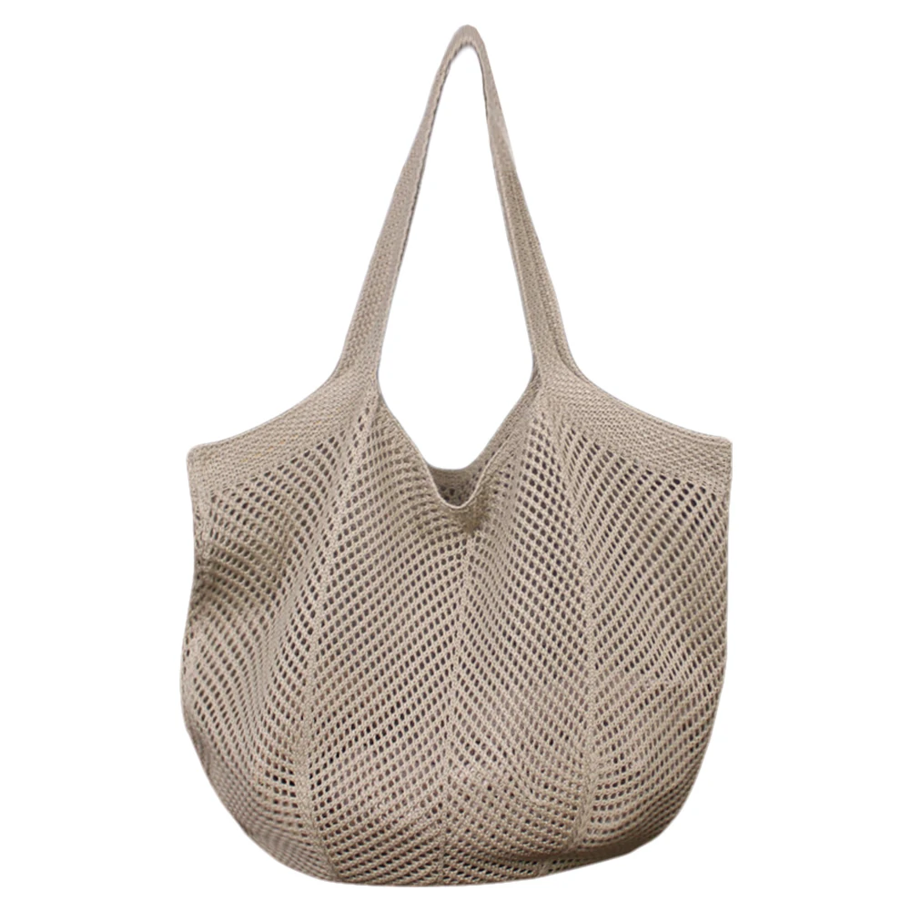 Women Aesthetic Shoulder Bag Solid Color Knitted Tote Handbag Large Capacity Knitting Shopping Handbag Ladies Daily Handbag Features: 1.Mesh Knit Elegance: Crafted from premium knit fabric, this crochet tote bag combines a soft, comfortable touch with long-lasting durability, making it an effortless accessory to maintain. 2.Spacious Versatility: With dimensions generous enough to accommodate essentials like your smartphone, keys, wallet, sunglasses, and cosmetics, this summer beach bag ensures all your items are neatly organized and easily accessible. 3.Chic Monochrome: Hand-knitted in stylish solid colors, this aesthetic shoulder bag seamlessly transitions from a shoulder bag to a handbag, complementing a wide array of outfits and occasions. 4.Everyday Essential: Perfect for a day out shopping, festive gatherings, or just adding a touch of class to your streetwear, this knitted tote handbag is as practical as it is fashionable. 5.Gift of Style: An ideal present for the fashion-conscious, this knitting shopping handbag is a thoughtful gift for mothers, girlfriends, or wives, sure to be cherished for its blend of style and utility.