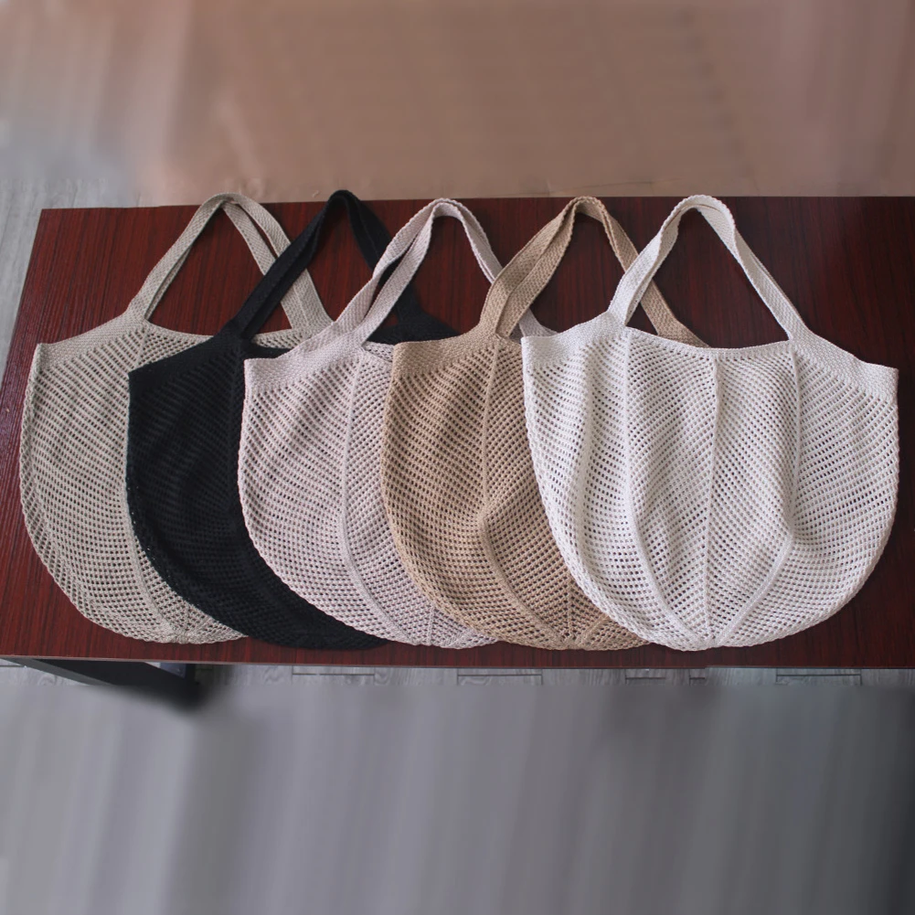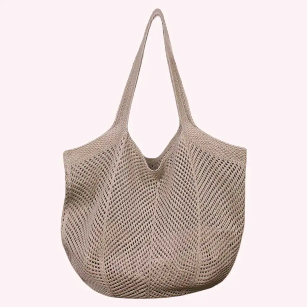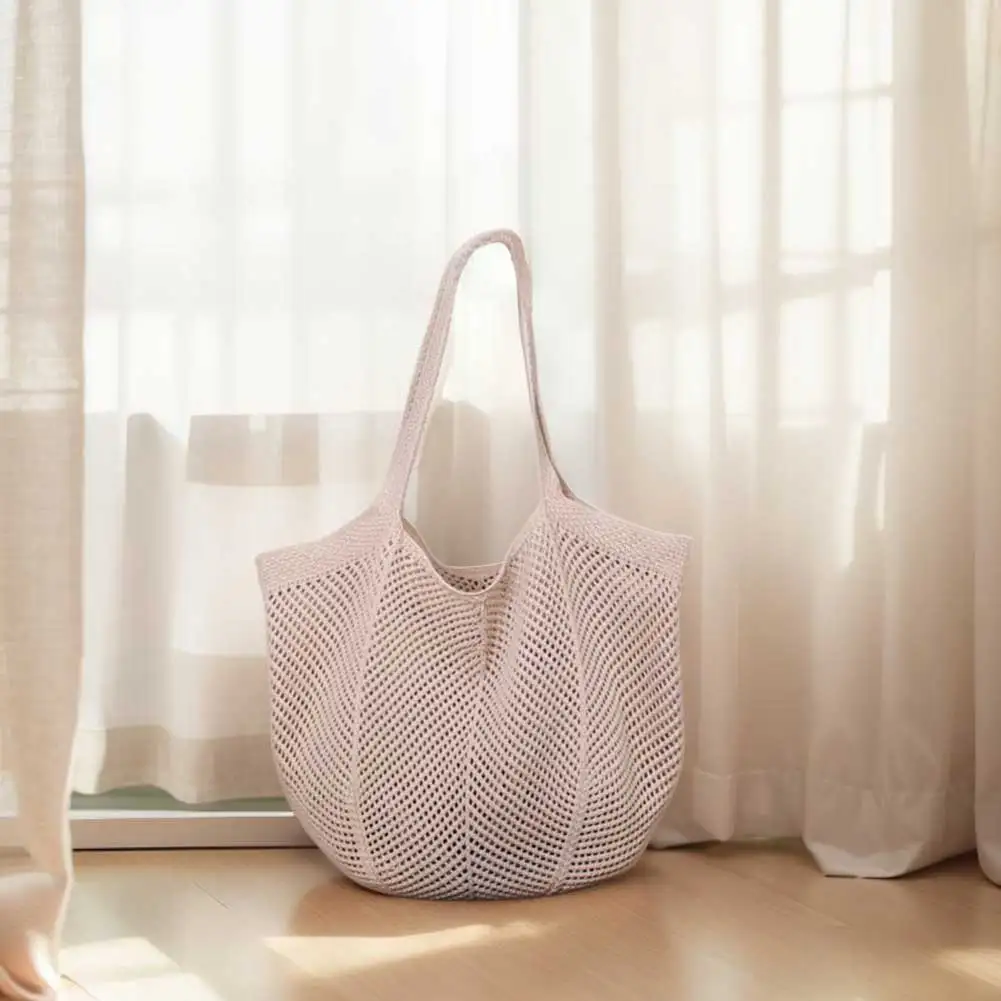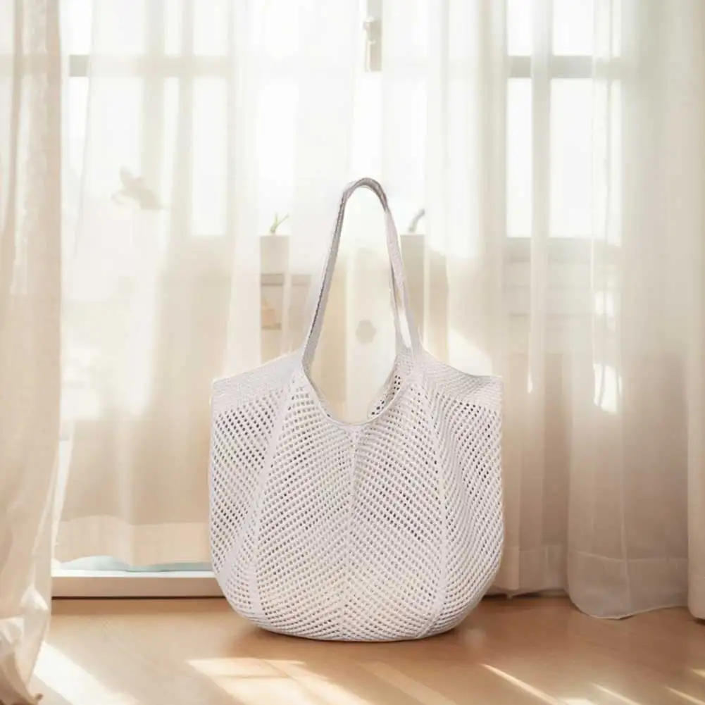 Women Aesthetic Shoulder Bag Solid Color Knitted Tote Handbag Large Capacity Knitting Shopping Handbag Ladies Daily Handbag Features: 1.Mesh Knit Elegance: Crafted from premium knit fabric, this crochet tote bag combines a soft, comfortable touch with long-lasting durability, making it an effortless accessory to maintain. 2.Spacious Versatility: With dimensions generous enough to accommodate essentials like your smartphone, keys, wallet, sunglasses, and cosmetics, this summer beach bag ensures all your items are neatly organized and easily accessible. 3.Chic Monochrome: Hand-knitted in stylish solid colors, this aesthetic shoulder bag seamlessly transitions from a shoulder bag to a handbag, complementing a wide array of outfits and occasions. 4.Everyday Essential: Perfect for a day out shopping, festive gatherings, or just adding a touch of class to your streetwear, this knitted tote handbag is as practical as it is fashionable. 5.Gift of Style: An ideal present for the fashion-conscious, this knitting shopping handbag is a thoughtful gift for mothers, girlfriends, or wives, sure to be cherished for its blend of style and utility.