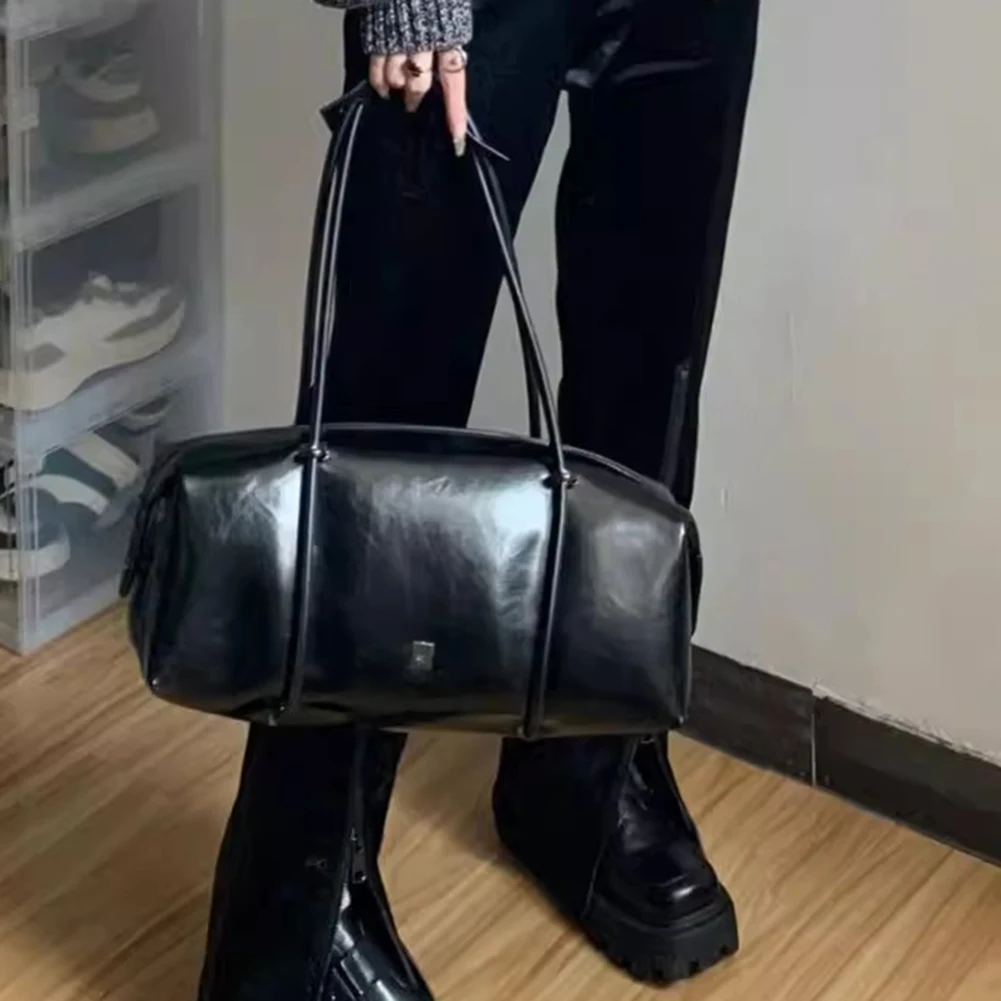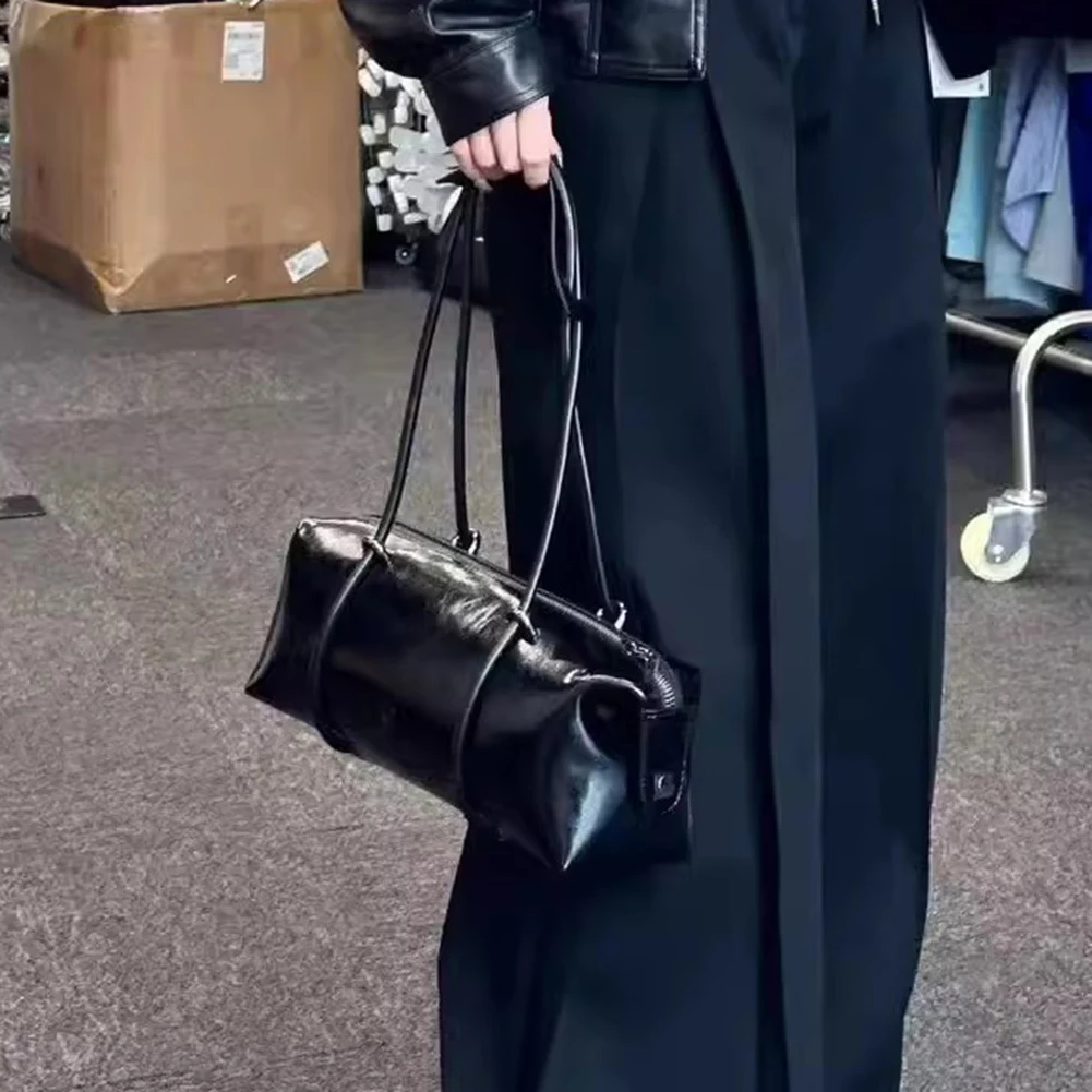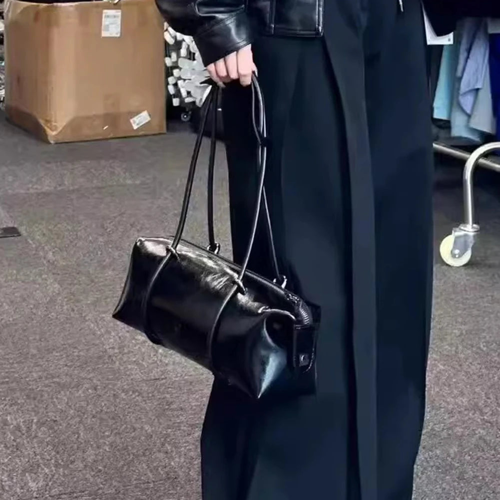 Women Casual Clutch Handbag Large Capacity PU Boston Pillow Bag Vintage Underarm Bag Solid Color for Outdoor Travel