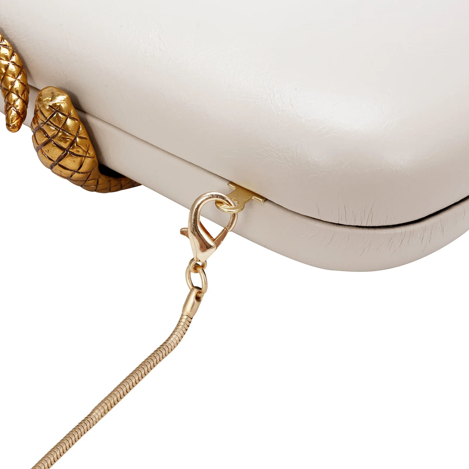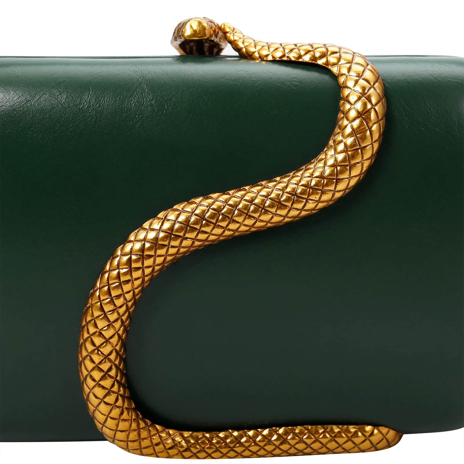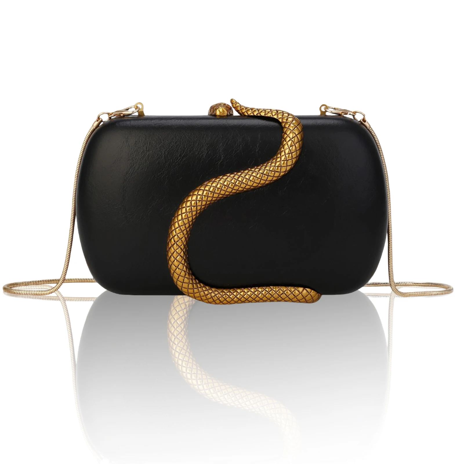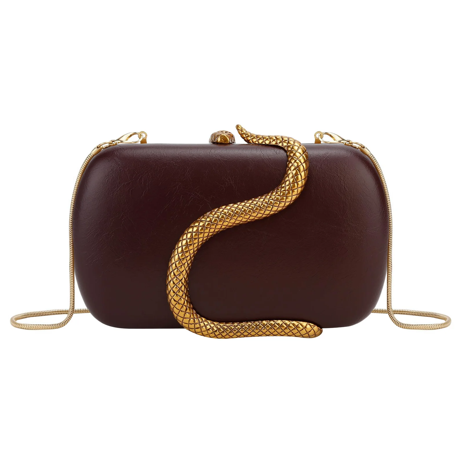 Women Glamorous Luxury Snake Hardware Decoration Pu Leather Clutch Long Chain Box Shaped Handbag Evening Bag Versatile Purse