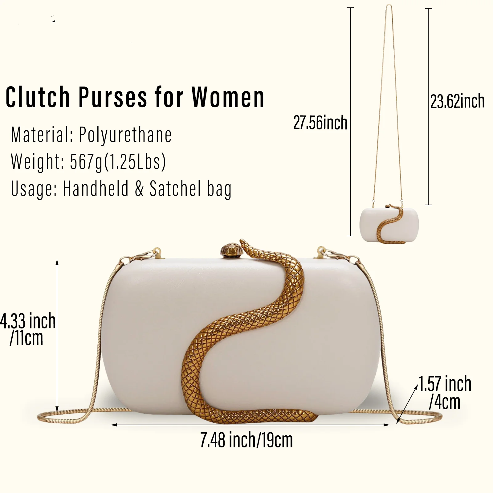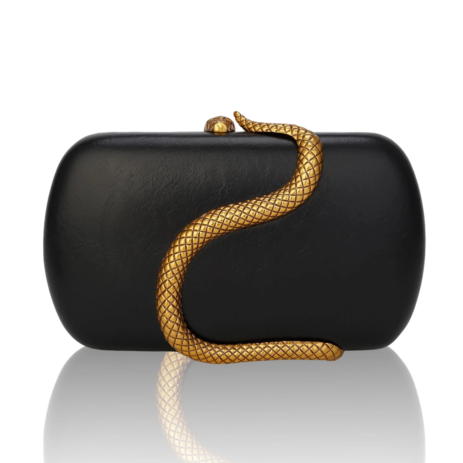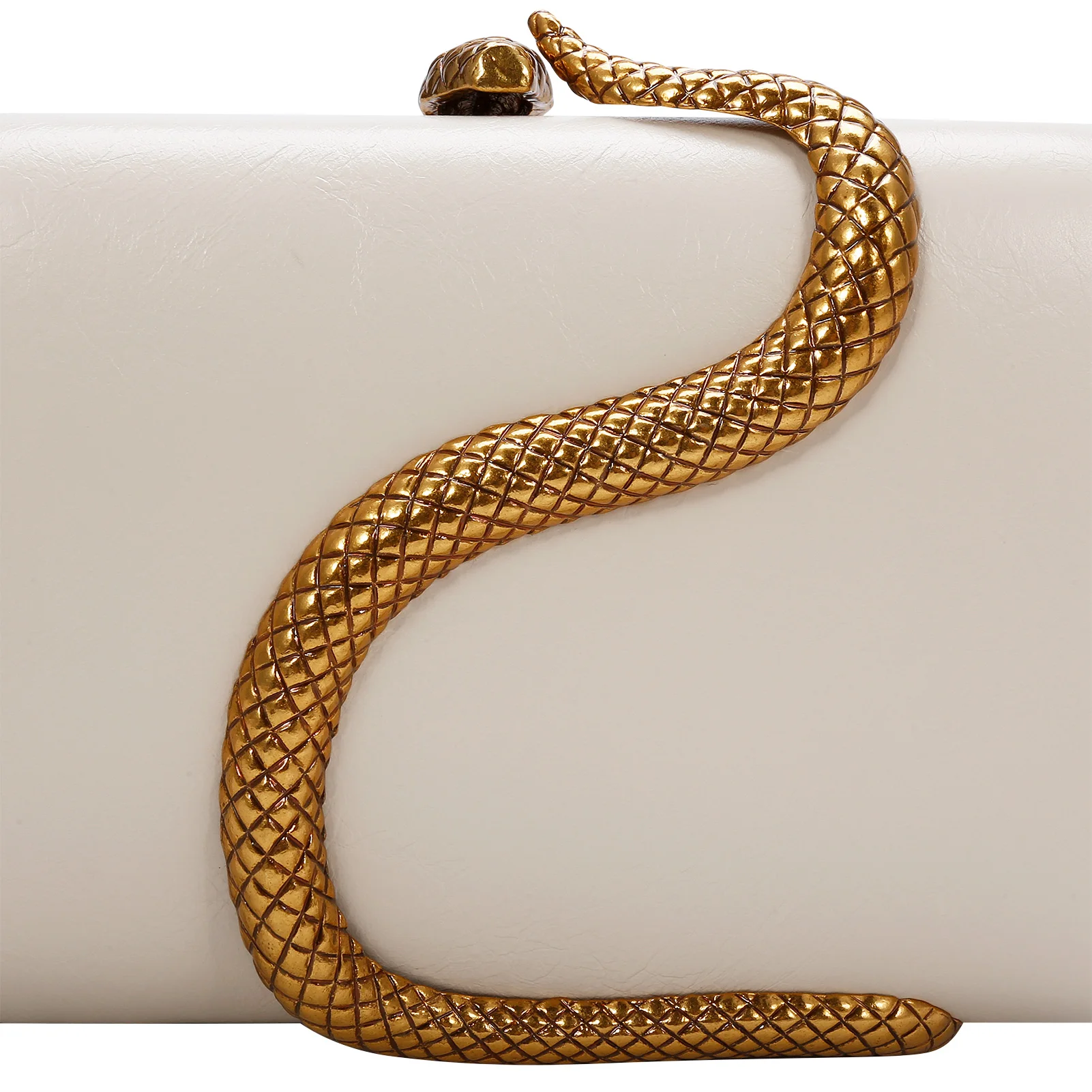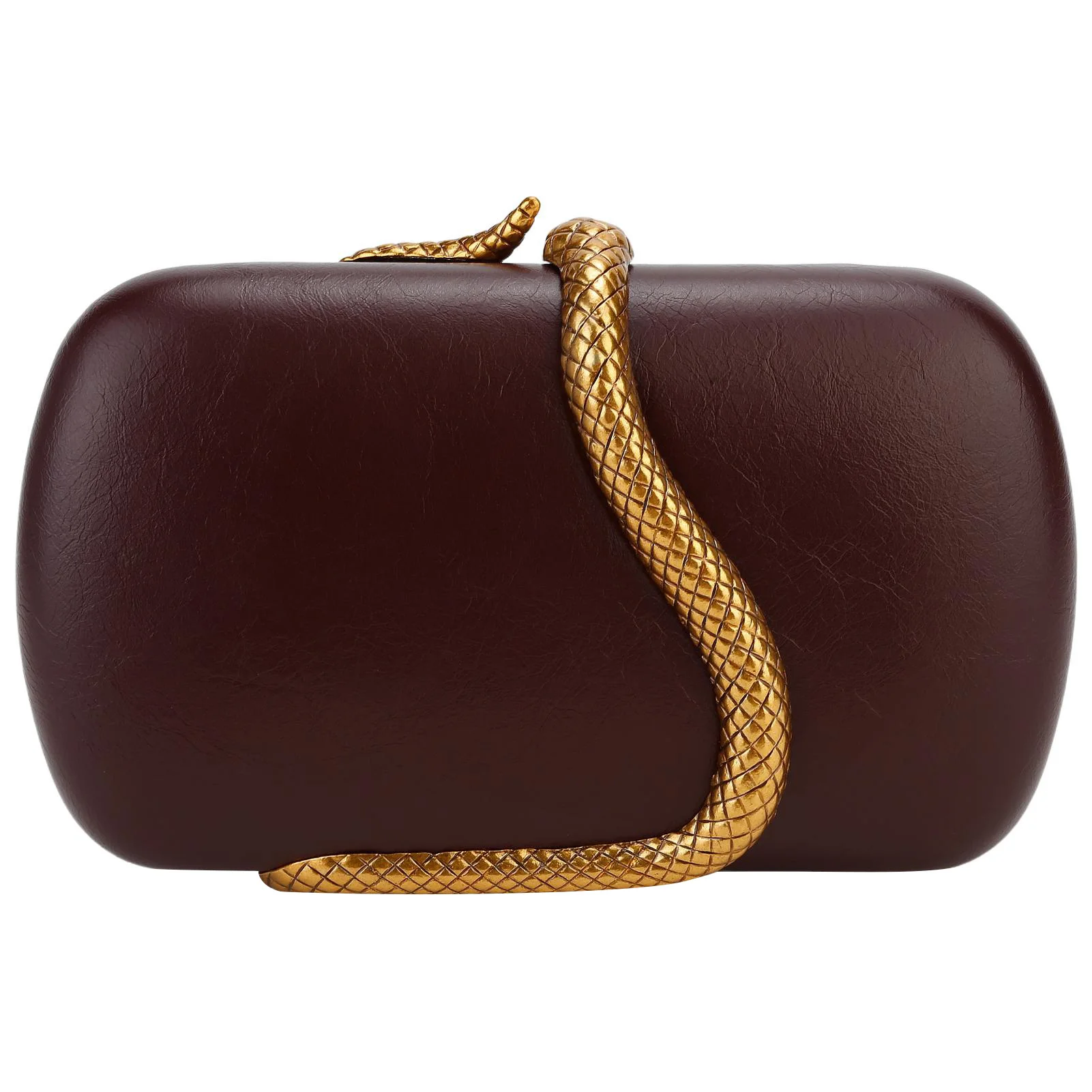 Women Glamorous Luxury Snake Hardware Decoration Pu Leather Clutch Long Chain Box Shaped Handbag Evening Bag Versatile Purse