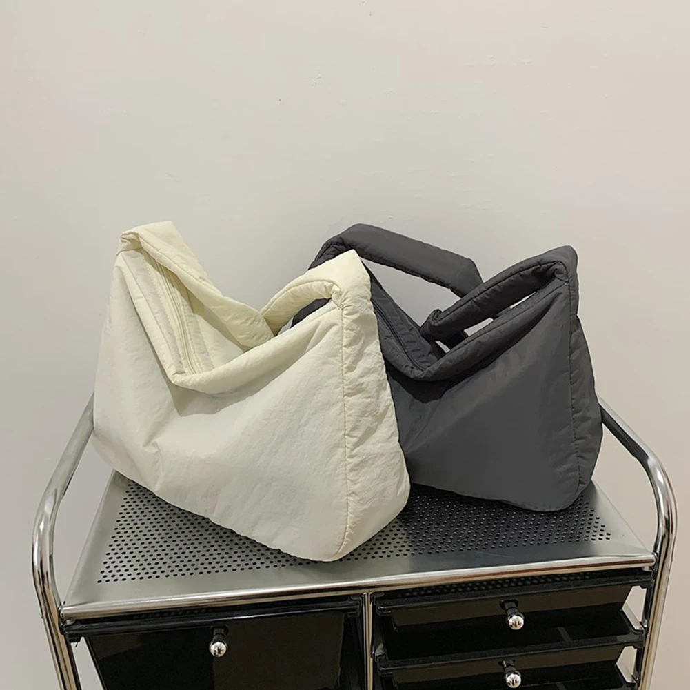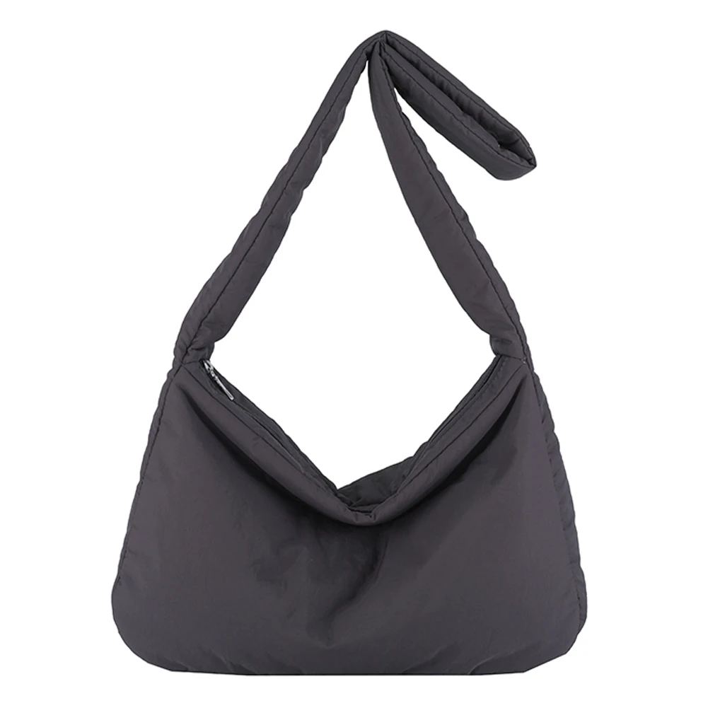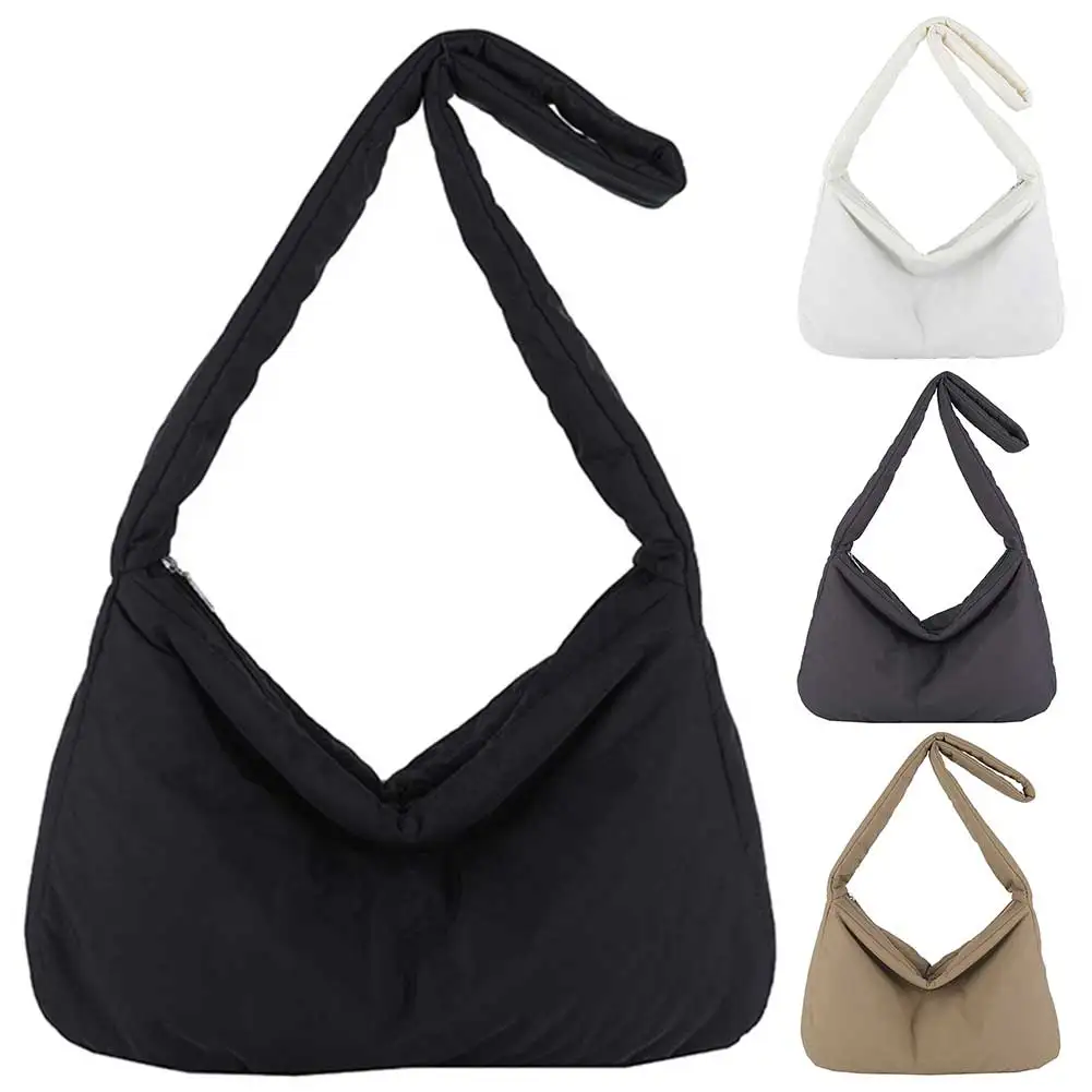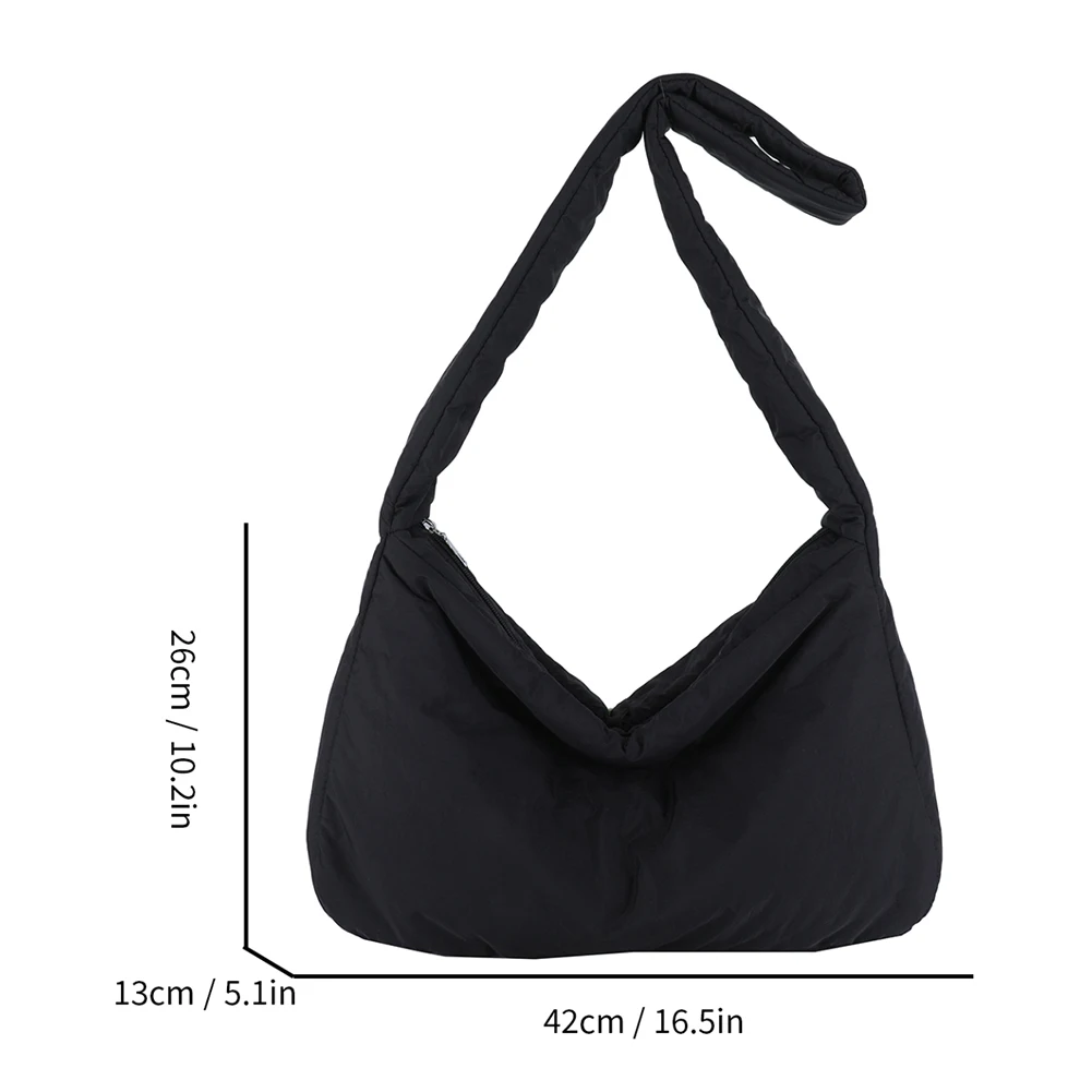 Women Nylon Puffer Tote Bag with Inner Pocket Shoulder Bag Solid Color Crossbody Bag with Zipper Hobo Bag for Work Travel