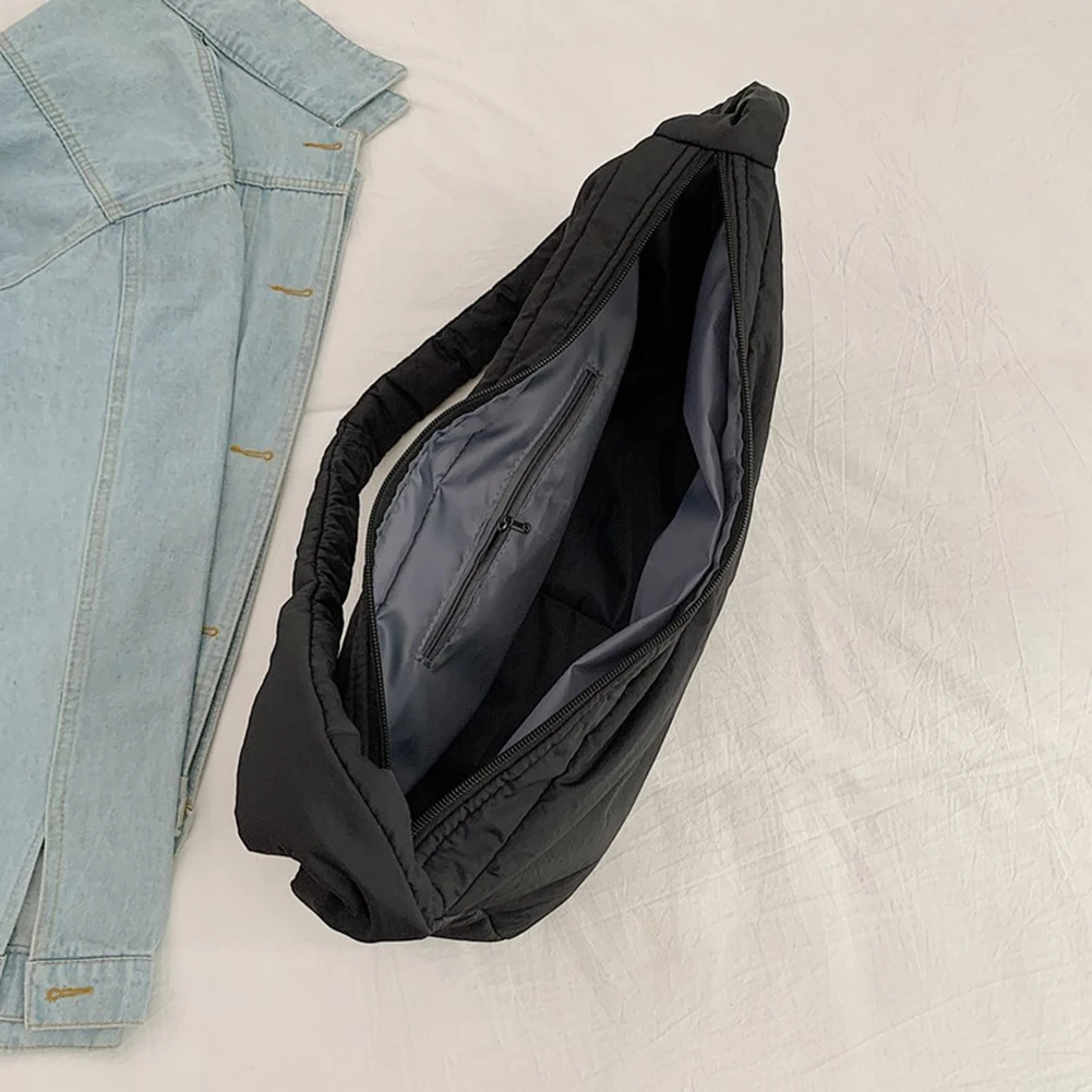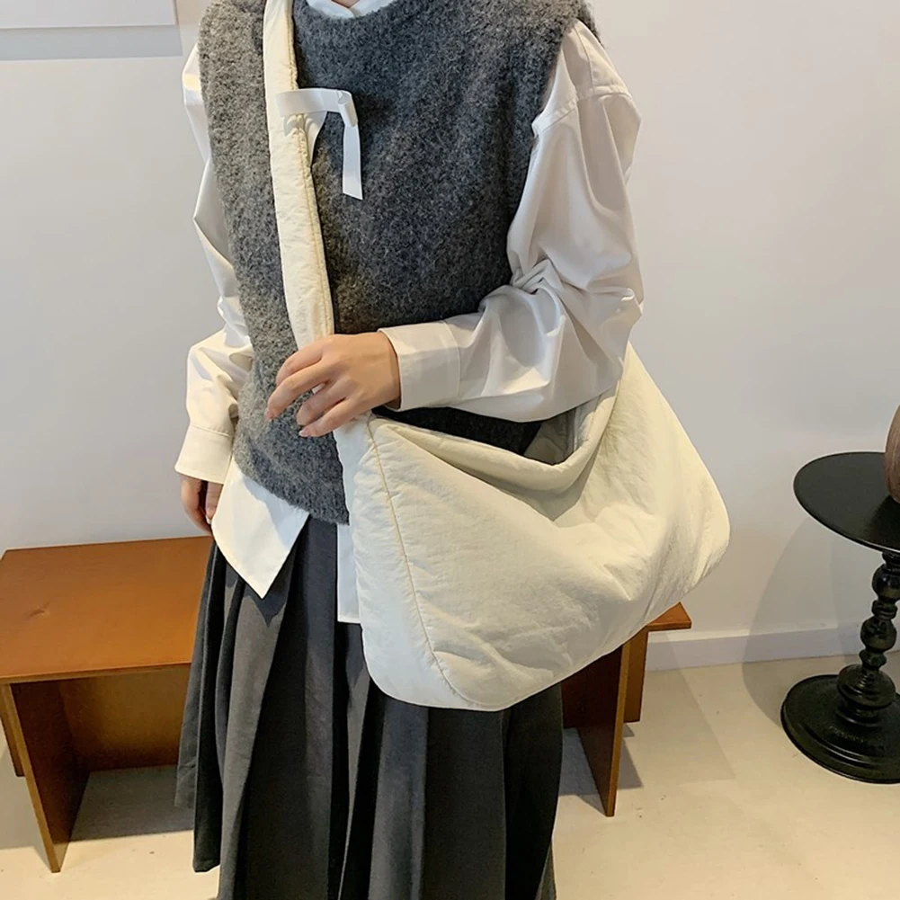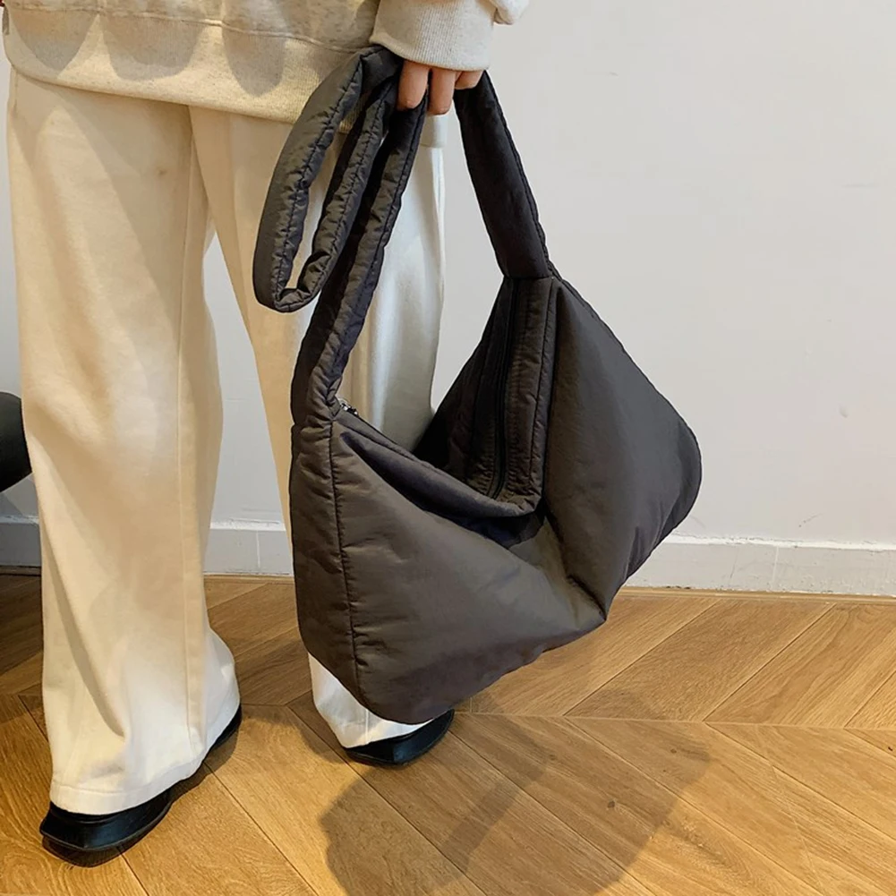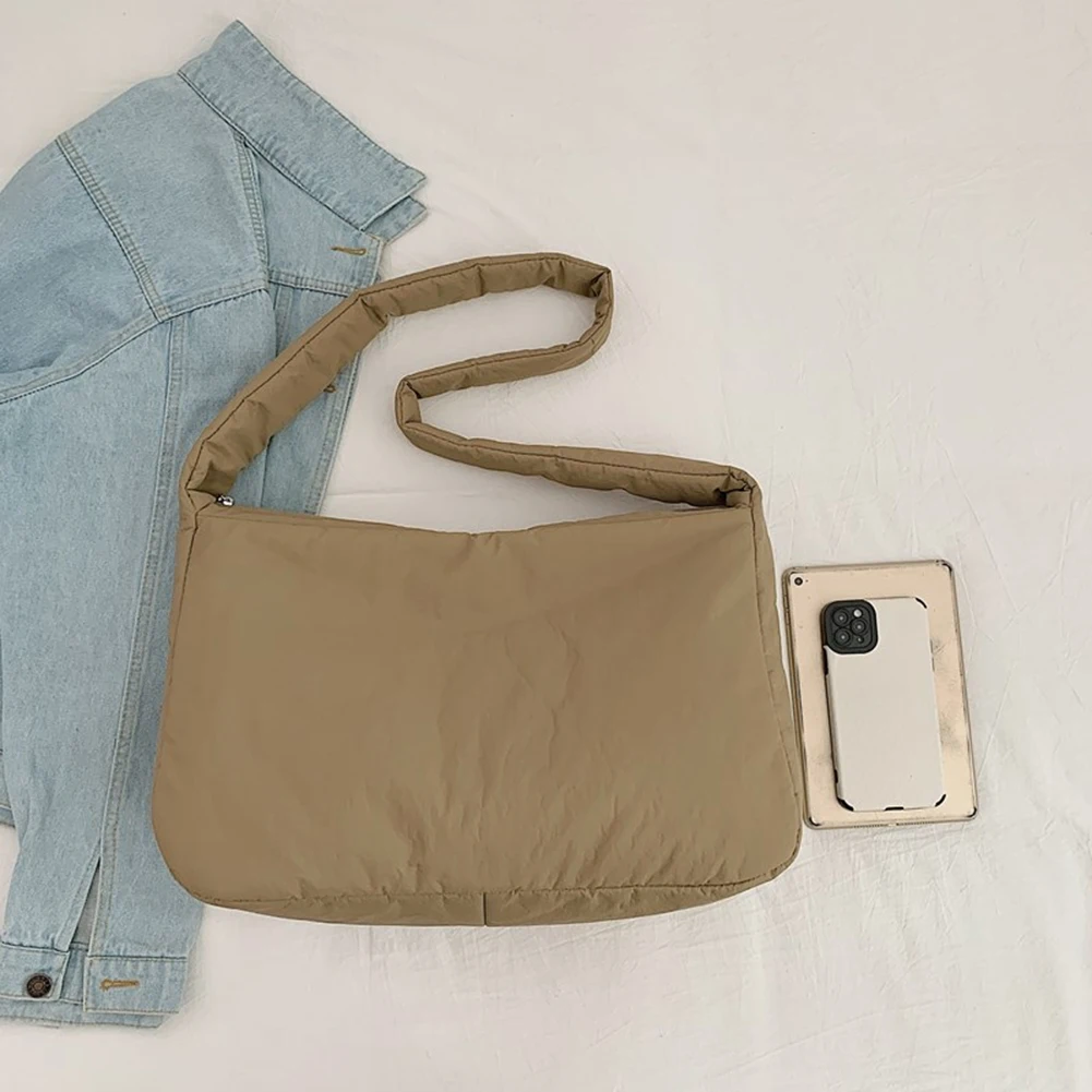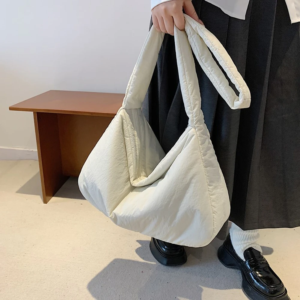 Women Nylon Puffer Tote Bag with Inner Pocket Shoulder Bag Solid Color Crossbody Bag with Zipper Hobo Bag for Work Travel