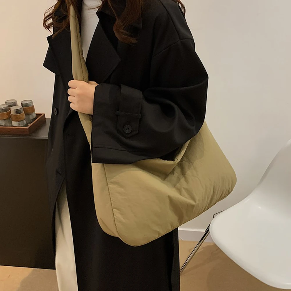 Women Nylon Puffer Tote Bag with Inner Pocket Shoulder Bag Solid Color Large Puffy Purse Hobo Bag for Work Travel