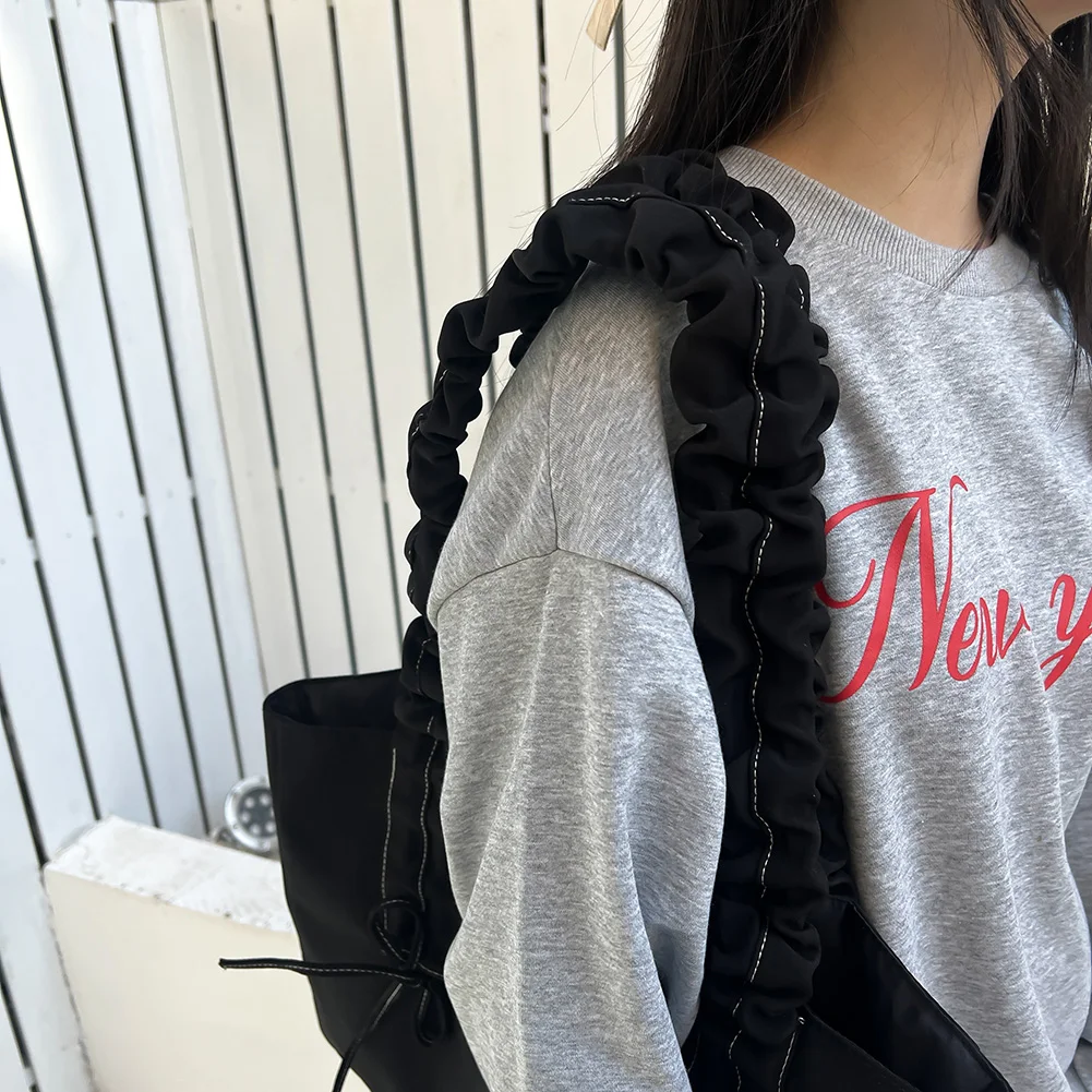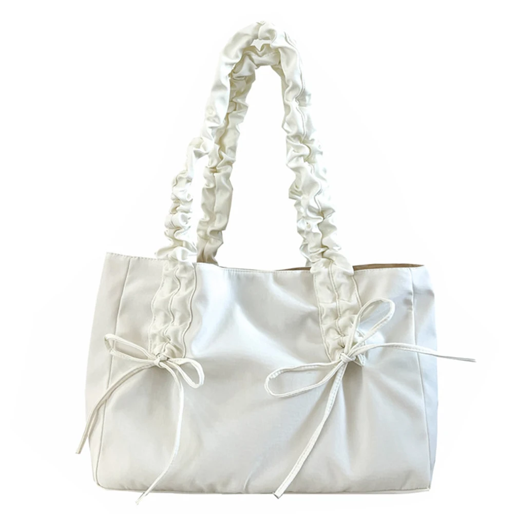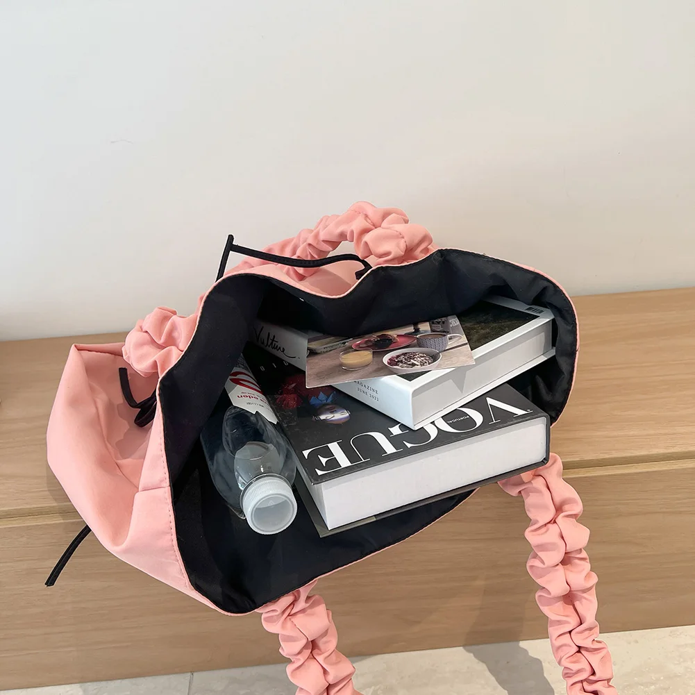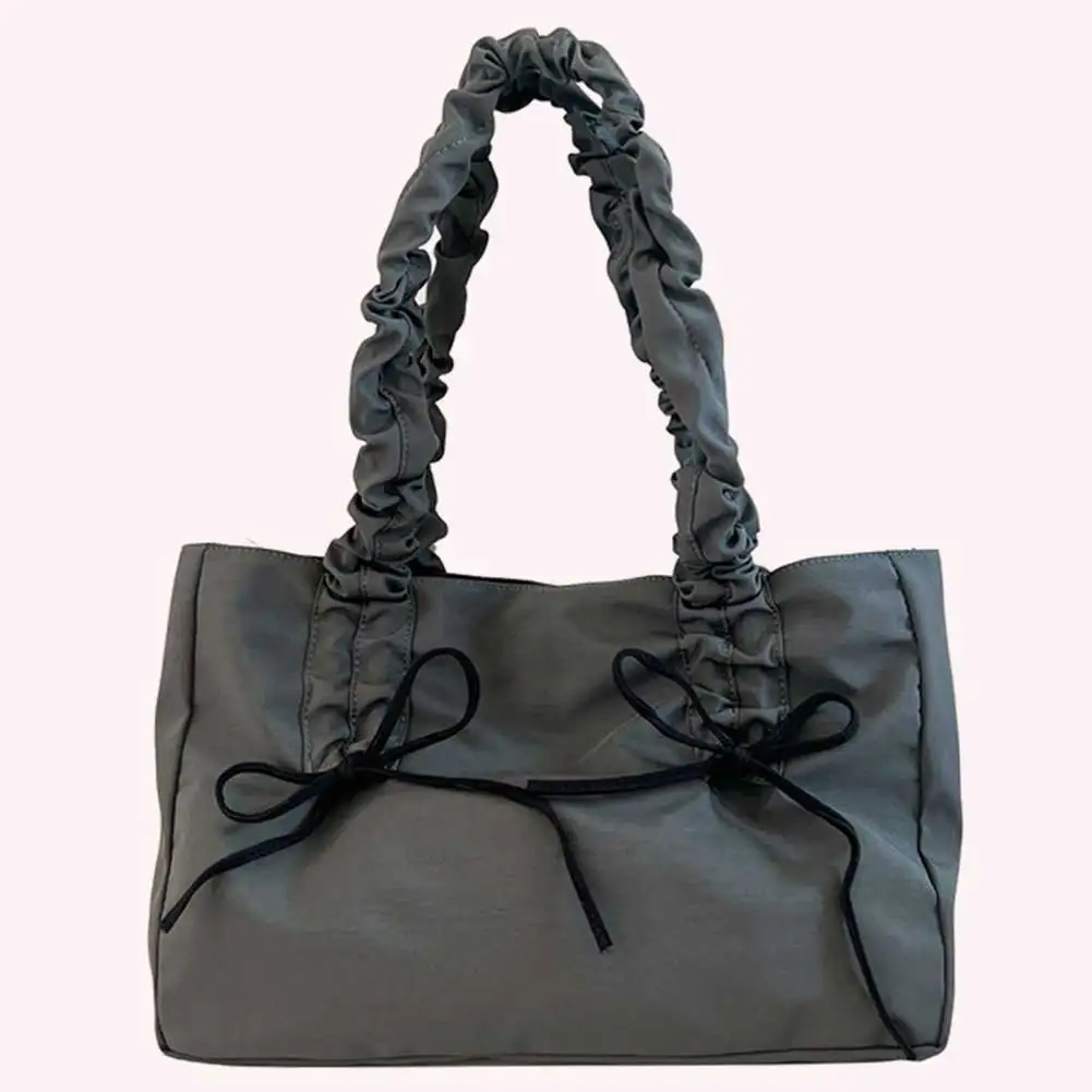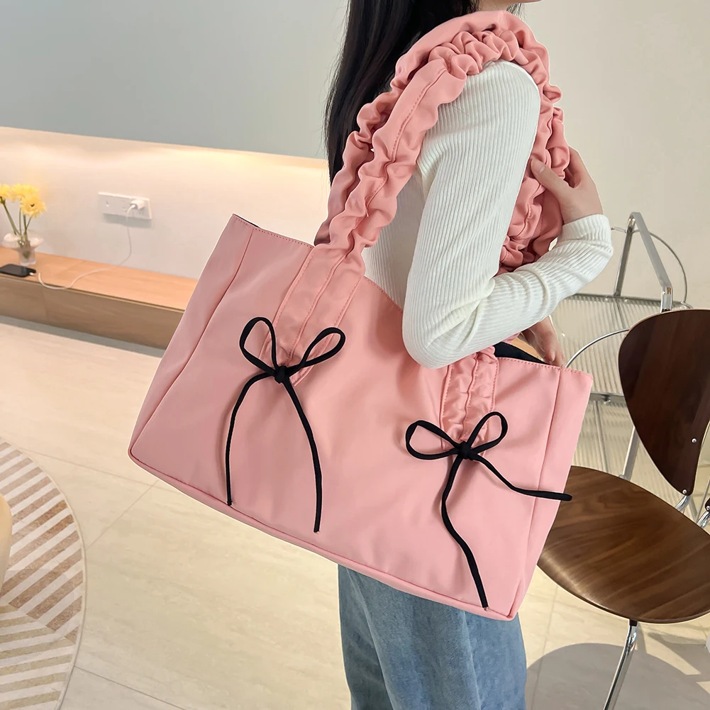 Women Nylon Tote Bag Fashion Shoulder Bag Large Capacity with Bow Stylish Crossbody Bag Pleated Shoulder Strap Daily Sling Bag