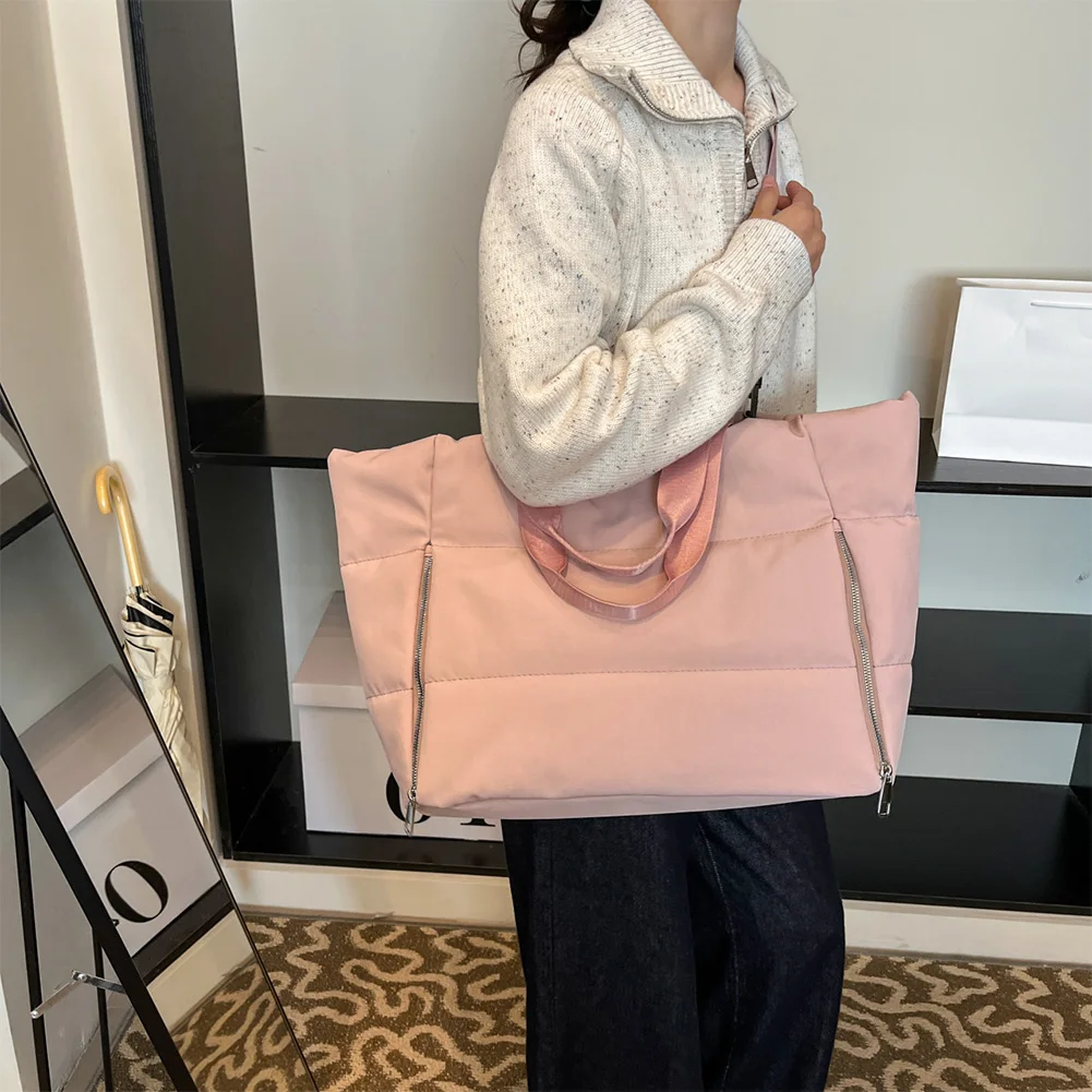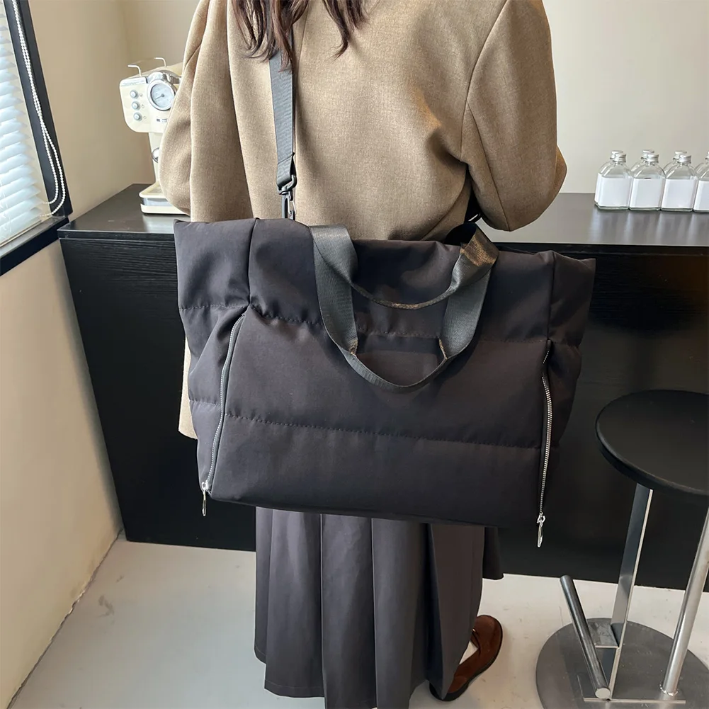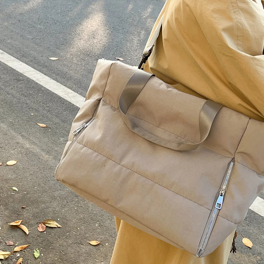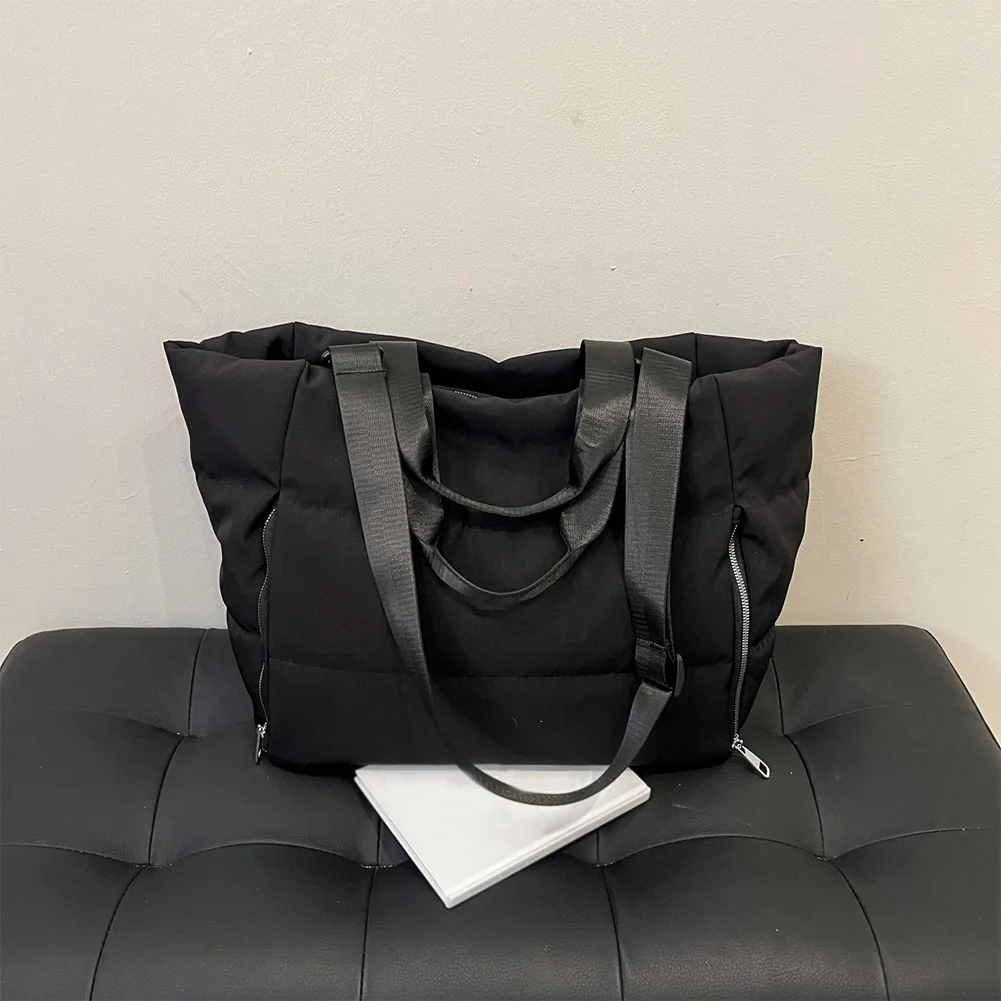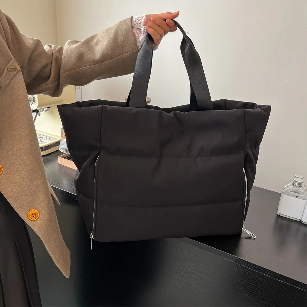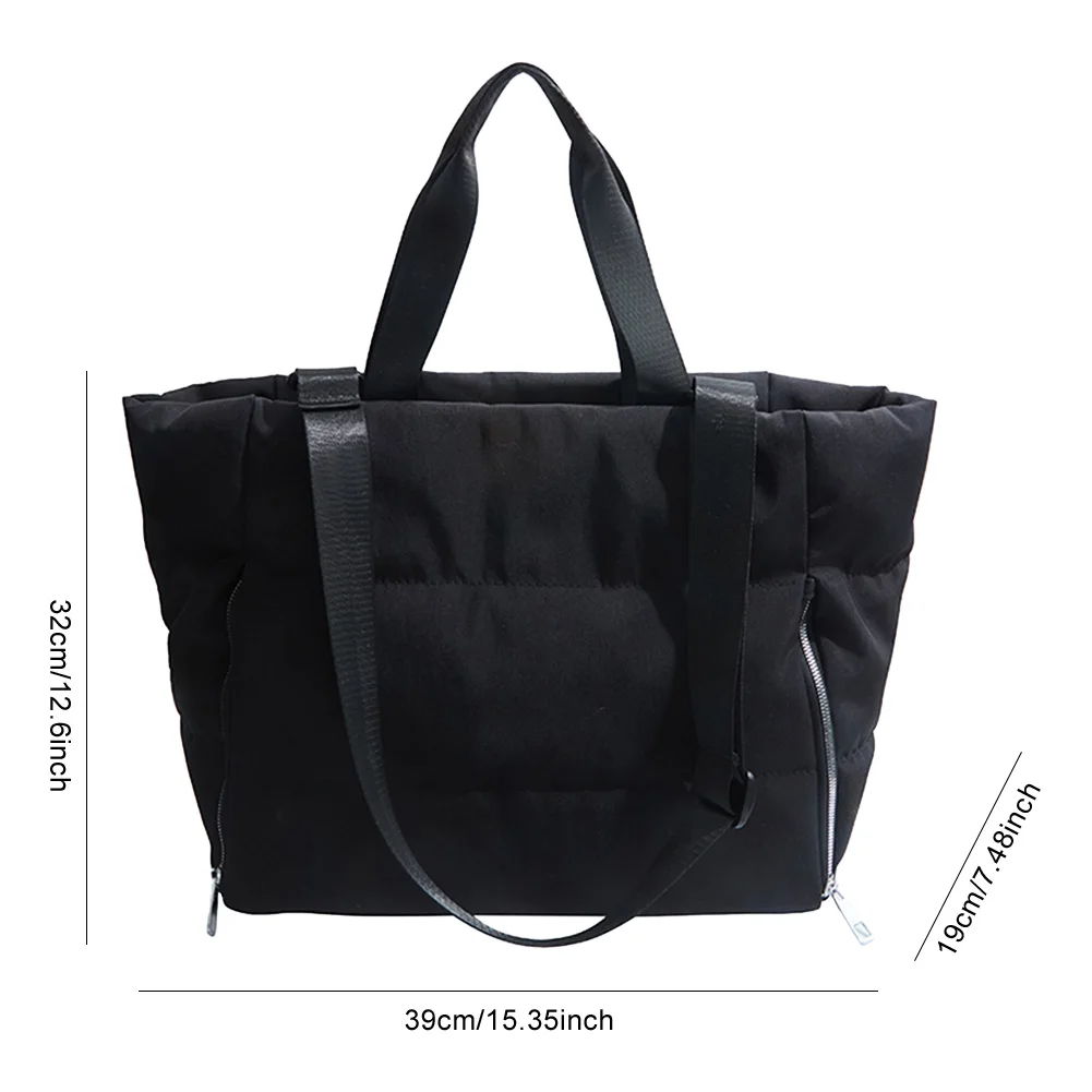 3. Stylish Design: Featuring a fashionable large-capacity tote shape with a zipper closure, this casual padded bag combines uniqueness with classic versatility, effortlessly complementing your everyday outfits.