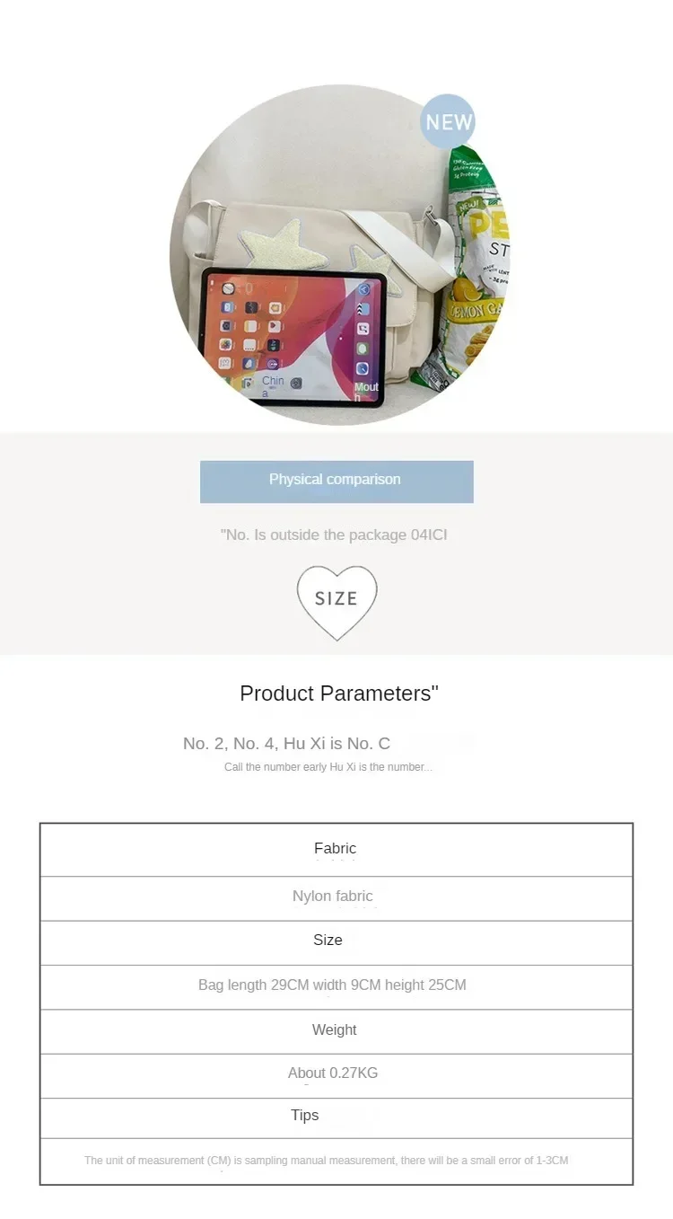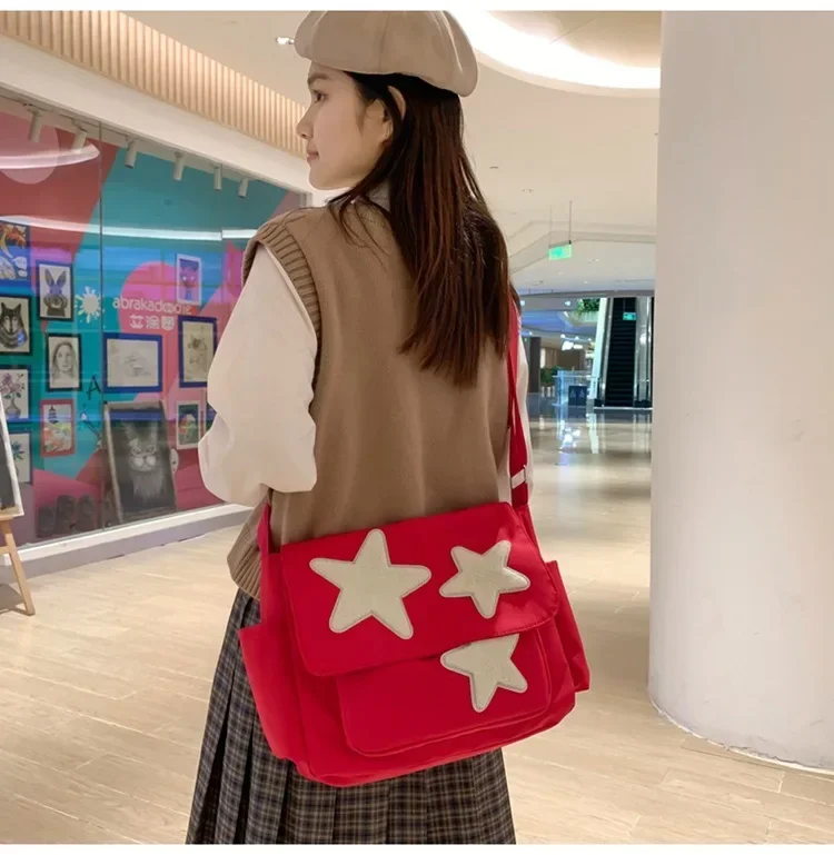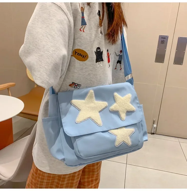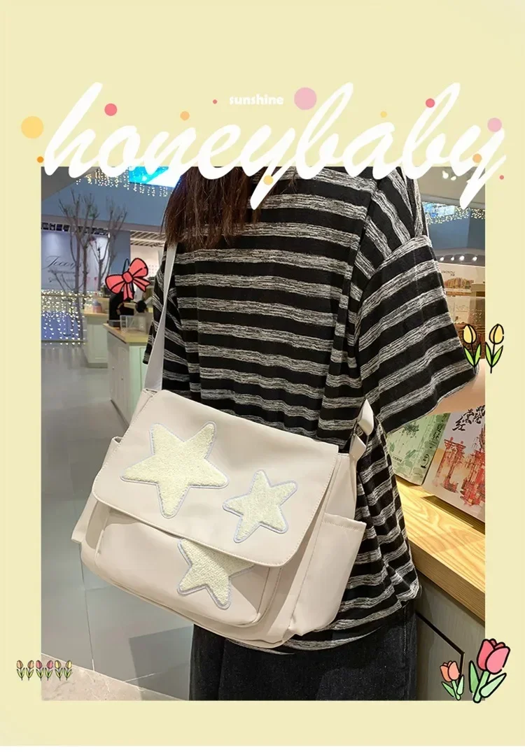 Women Star Pattern Y2k Messenger Bag Casual Tote Lady Simple Large Capacity Shoulder Bag Girl Travel School Bookbag Handbag