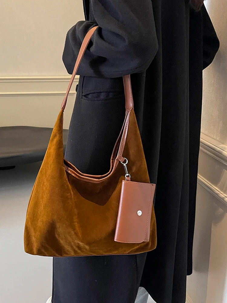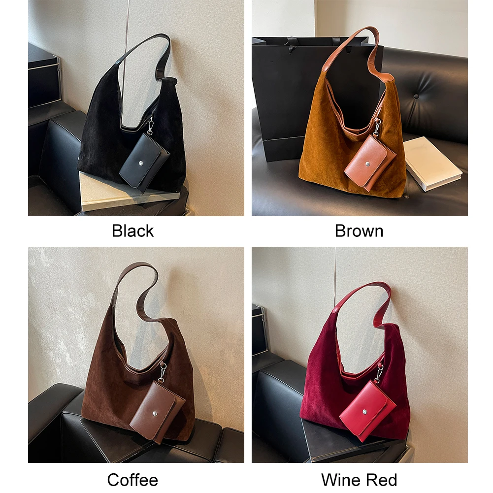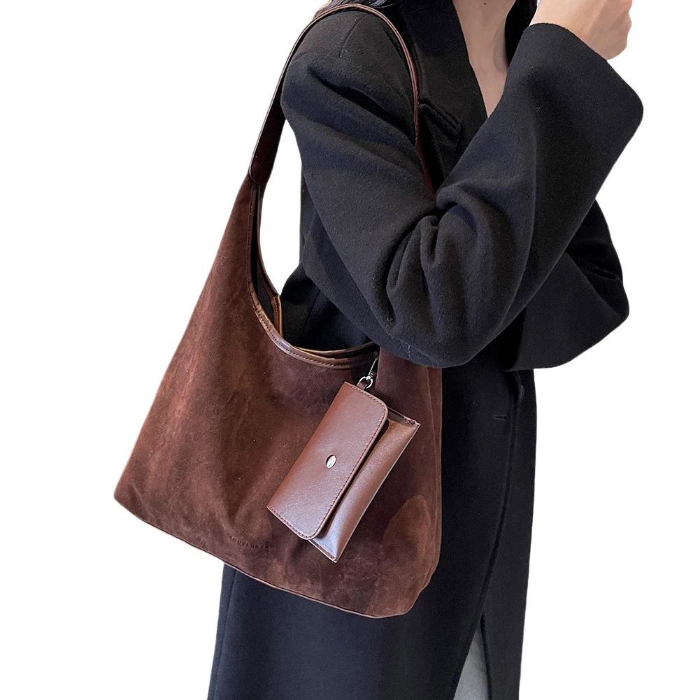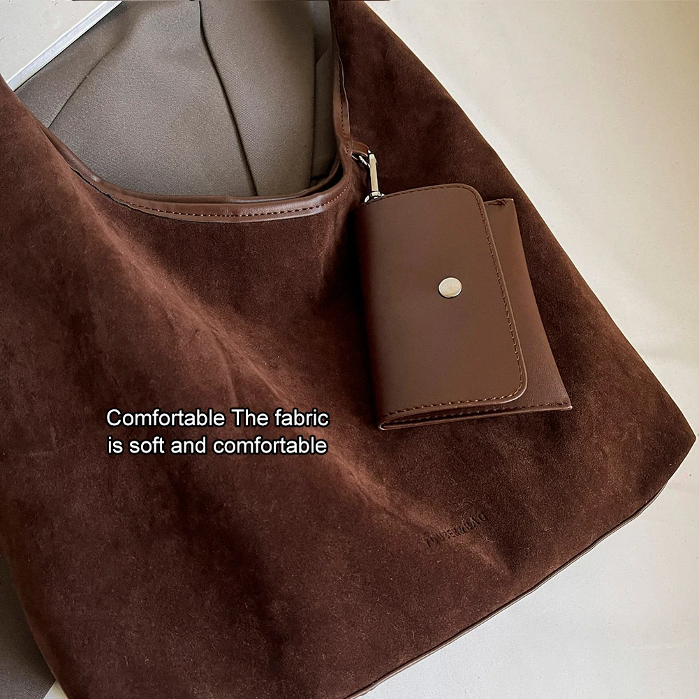 Women Suede Shoulder Bag with Inner Pocket Crescent Bag Magnetic Closure Large Handbag Commuting Shopping Bag