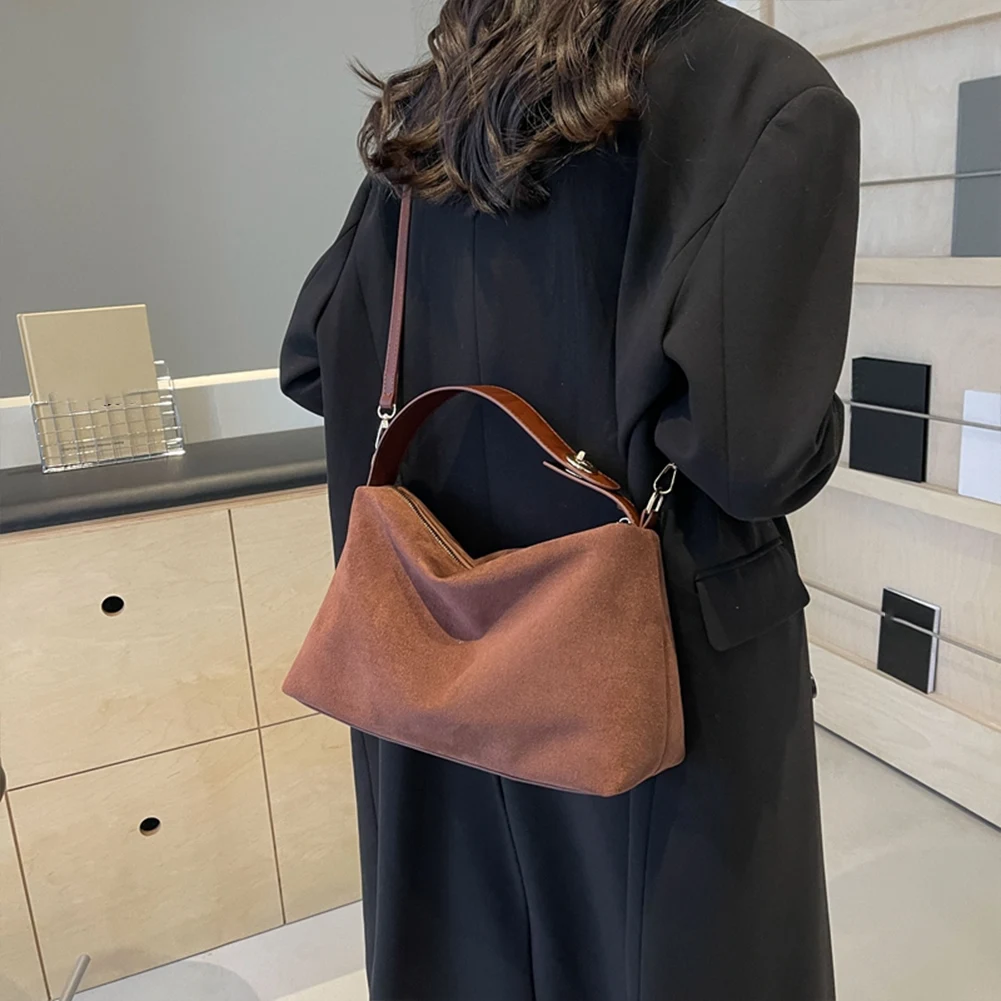Women Suede Shoulder Bag With Inner Pocket Crossbody Bag Adjustable Strap Hobo Purse Zipper Hand bags Casual Commuter Bag